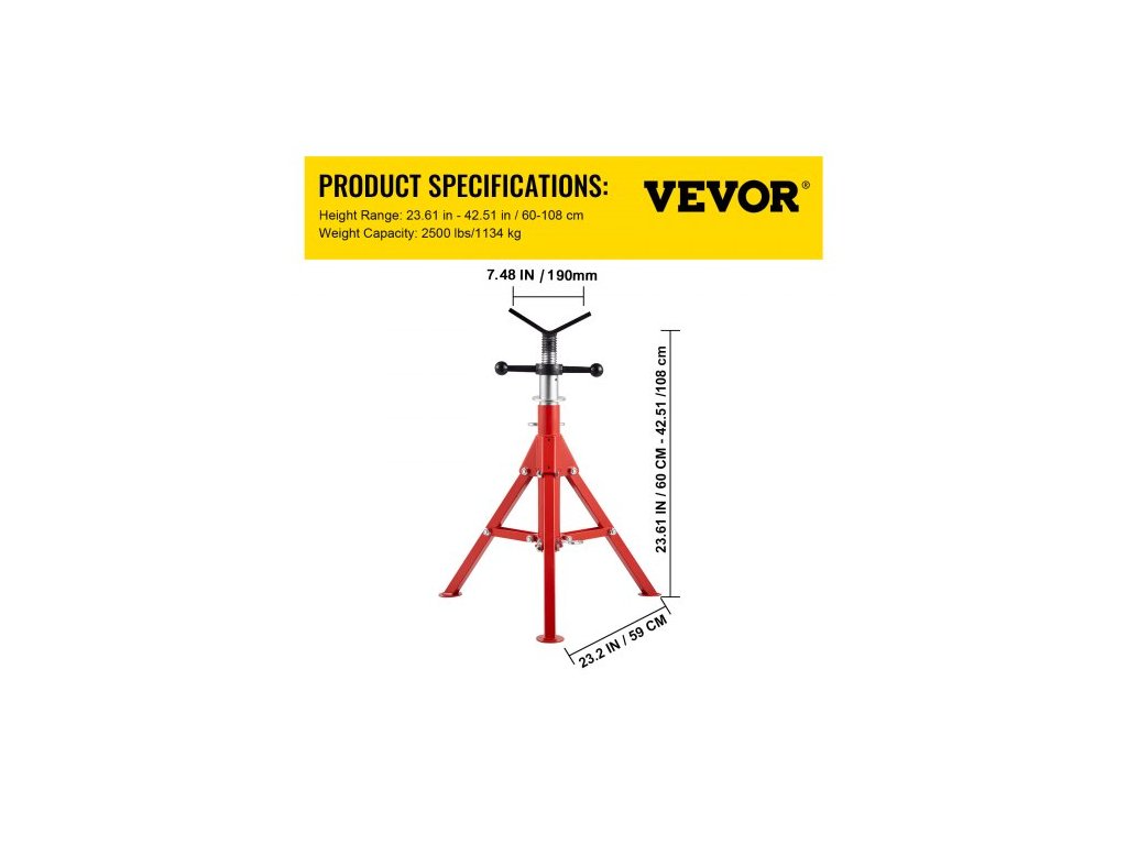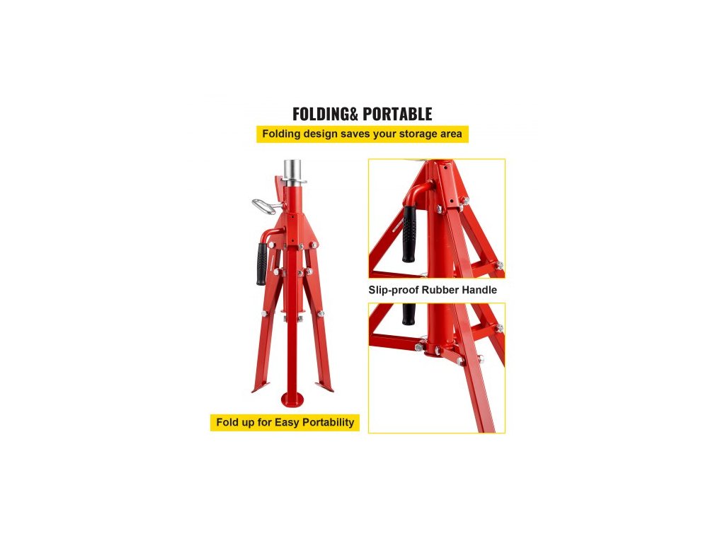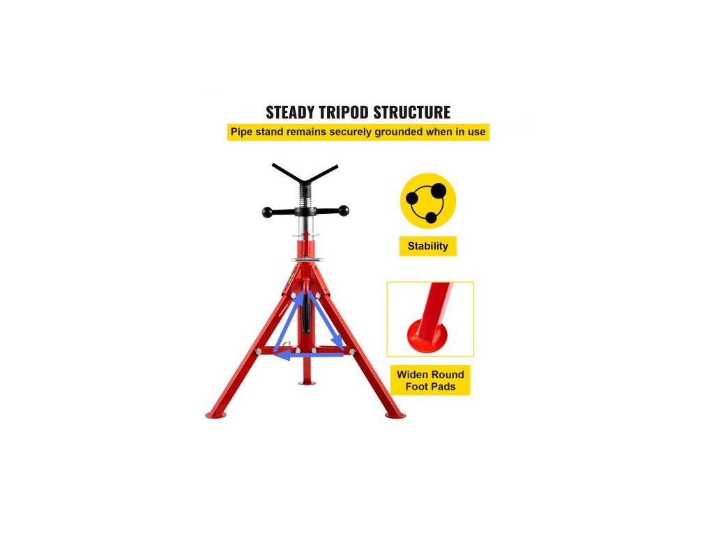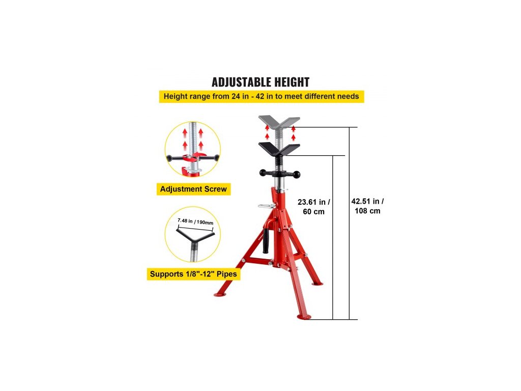 Stojan na trubky V Head, nosnost 1/8"-12", nastavitelná výška 610 mm-1067 mm, zvedáky na trubky, nosnost 1134 kg, přenosné skládací stojany na trubky, tělo z uhlíkové oceli pro zvýšenou odolnost