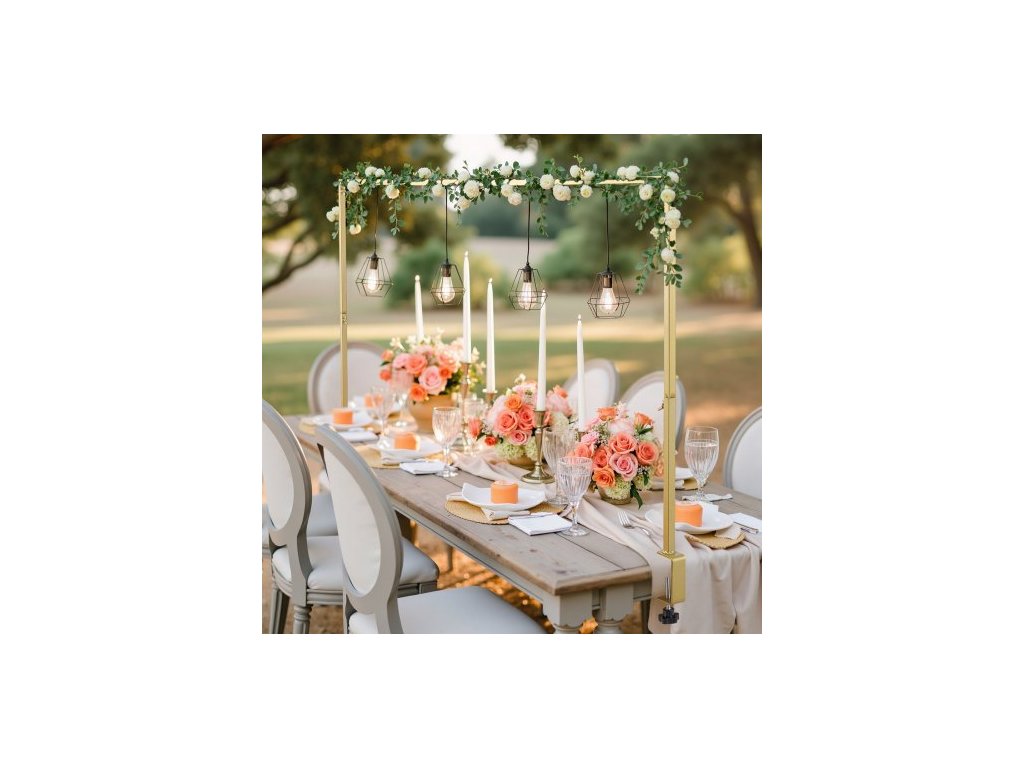 Stojan na tyč nad stůl se svorkami, výška 33-107 cm a nastavitelná délka 76-244 cm, kovový stojan na stůl, balónkový oblouk na stůl pro svatební, narozeninové a vánoční dekorace, zlatýPraktický rám na tyč