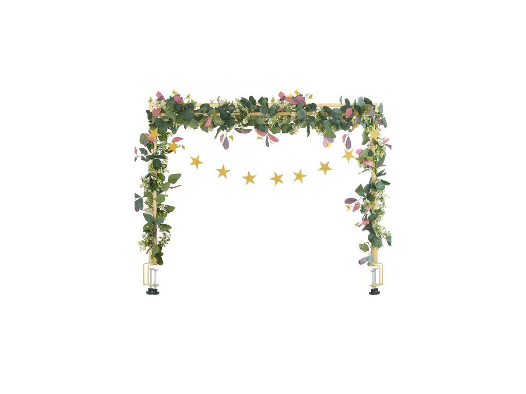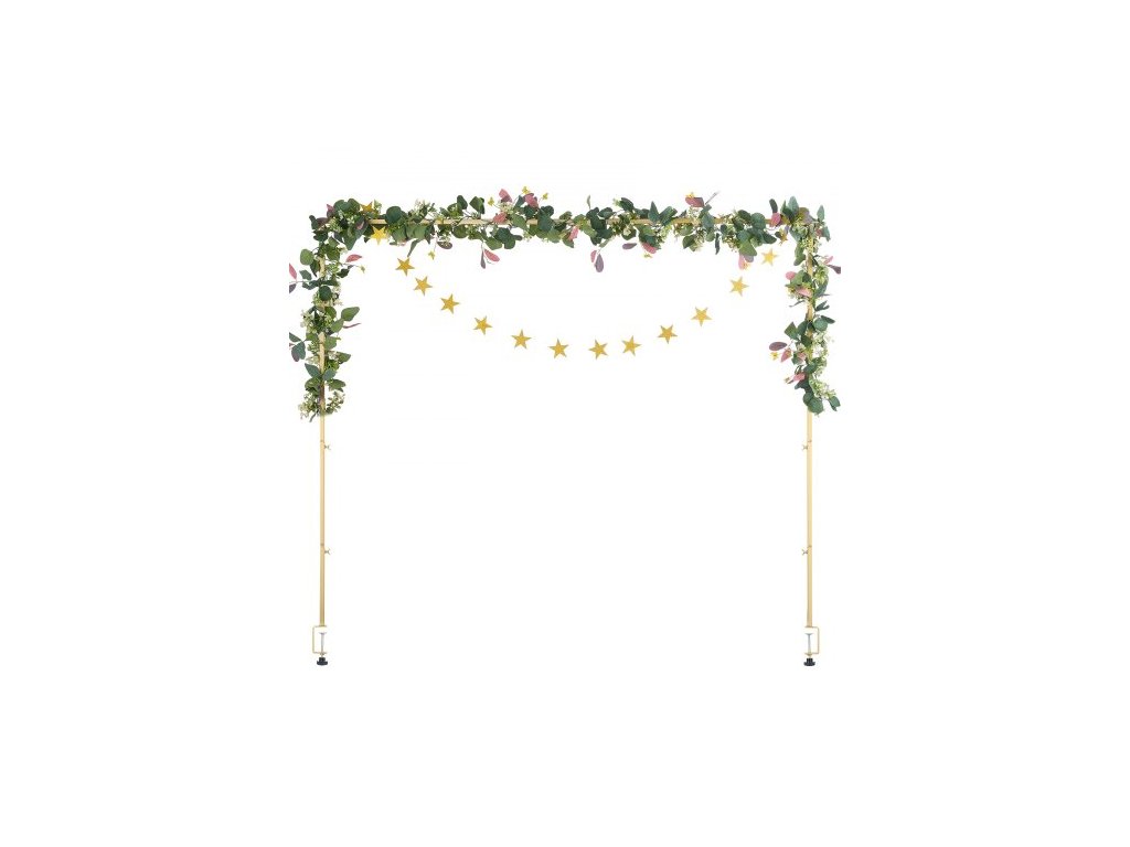 Stojan na tyč nad stůl se svorkami, výška 33-107 cm a nastavitelná délka 72-244 cm, kovový stojan na stůl s ratanem, oblouk s balónky na stůl pro svatební, narozeninové, vánoční dekorace, zlatý