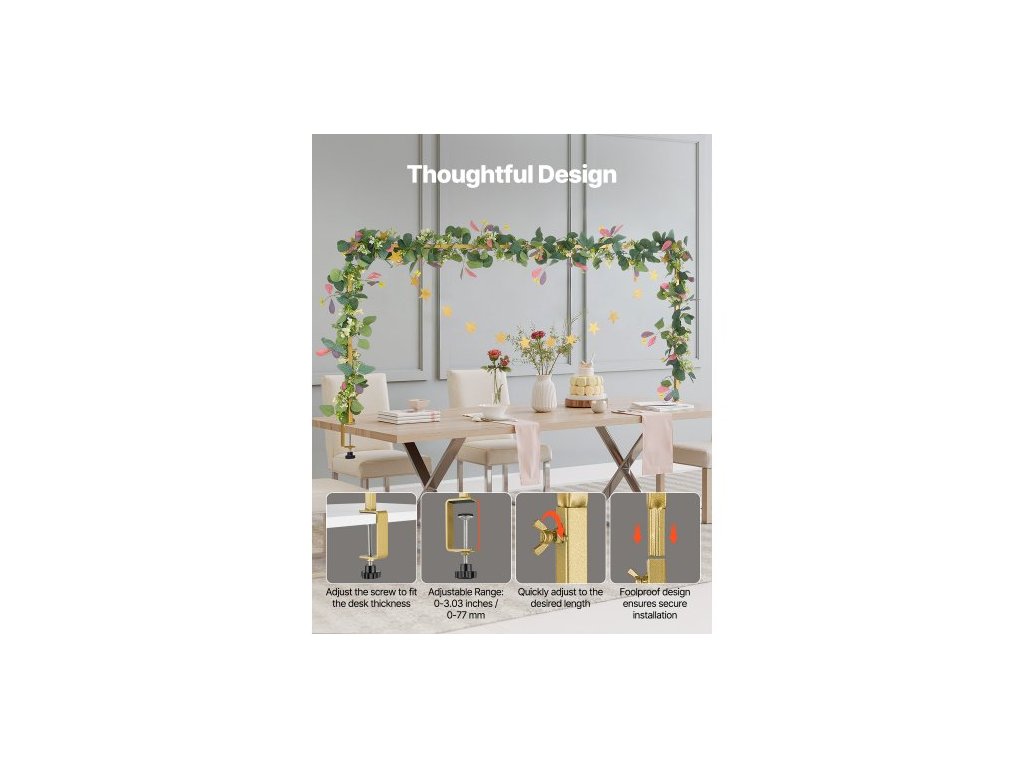 Stojan na tyč nad stůl se svorkami, výška 33-107 cm a nastavitelná délka 76-244 cm, kovový stojan na stůl s ratanem, balónkový oblouk na stůl pro svatební, narozeninové a vánoční dekorace, zlatýPraktický rám na tyč