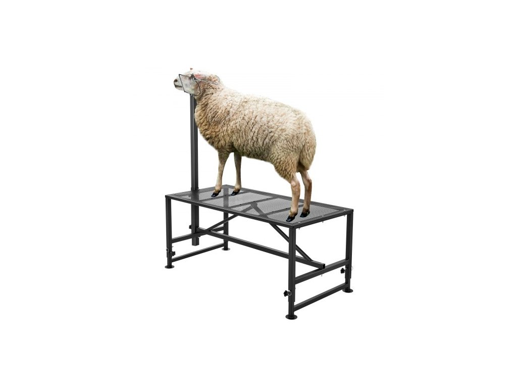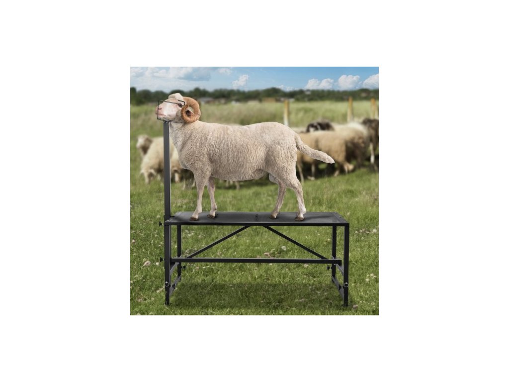Stojan pro kozy a ovce, stojan pro hospodářská zvířata 123 x 63 cm, kovový stojan na dojení a stříhání hospodářských zvířat, nastavitelná výška 53 až 89 cm, s hlavicí a nosní poutkem, nosnost 227 kg, černý