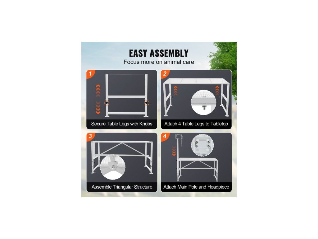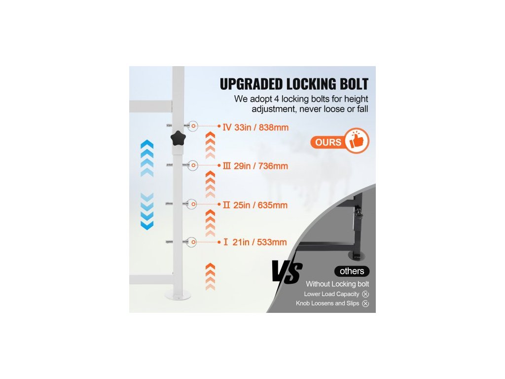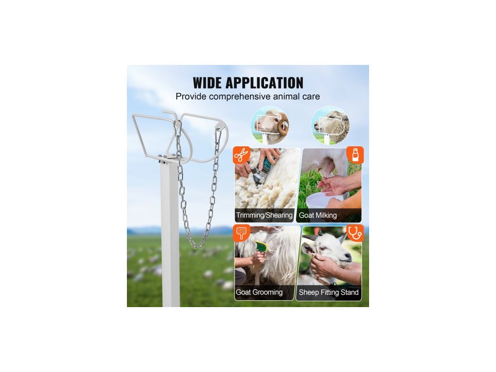 Stojan pro kozy a ovce, stojan pro hospodářská zvířata 47x23 palců, kovový stojan na dojení a stříhání hospodářských zvířat, nastavitelná výška 21" až 33", s hlavicí a nosní smyčkou, nosnost 500 liber, bílýStojan pro farmářské kozy