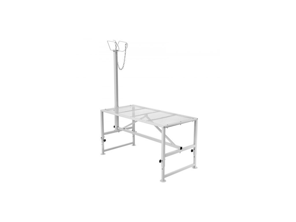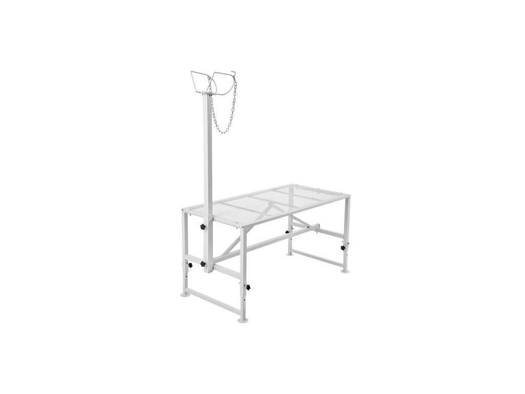 Stojan pro kozy a ovce, stojan pro hospodářská zvířata 123 x 63 cm, kovový stojan na dojení a stříhání hospodářských zvířat, nastavitelná výška 53 až 89 cm, s hlavicí a nosní smyčkou, nosnost 227 kg, bílý