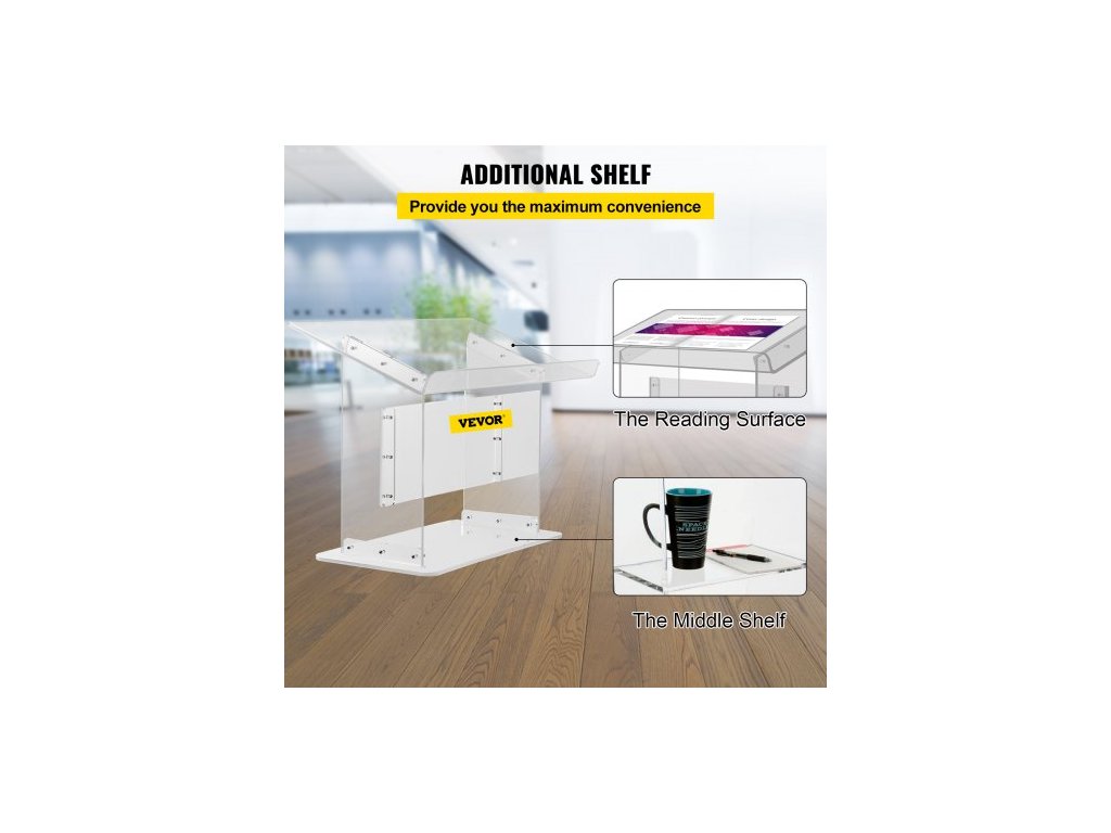 Stolní akrylové pódium , vysoké 49,5 cm, plexisklové pódium, 67 cm x 33,7 cm, stolní akrylové kazatelny pro kostely, šikmý povrch s okrajem pro držák na knihy, průhledný pultík pro přednášky, projevy a prezentace