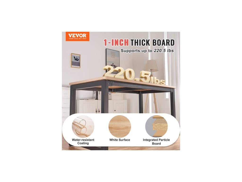 Stolní deska , 182,4 cm x 84,5 cm x 2,5 cm, nosnost 100,7 kg, univerzální jednodílná dřevotřísková deska pro výškově nastavitelný elektrický stolní rám, obdélníková pracovní deska pro domácnost a kancelářVoděodolná dřevotřísková deska