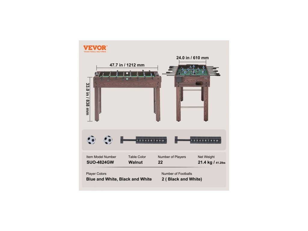 Stolní fotbálek , standardní velikost 48 palců, vnitřní stolní fotbálek plné velikosti pro domácnost, rodinu a hernu, sada fotbalového stolu se stolním fotbálkem, obsahuje 2 míče a 2 držáky na nápojeRelaxační zážitek