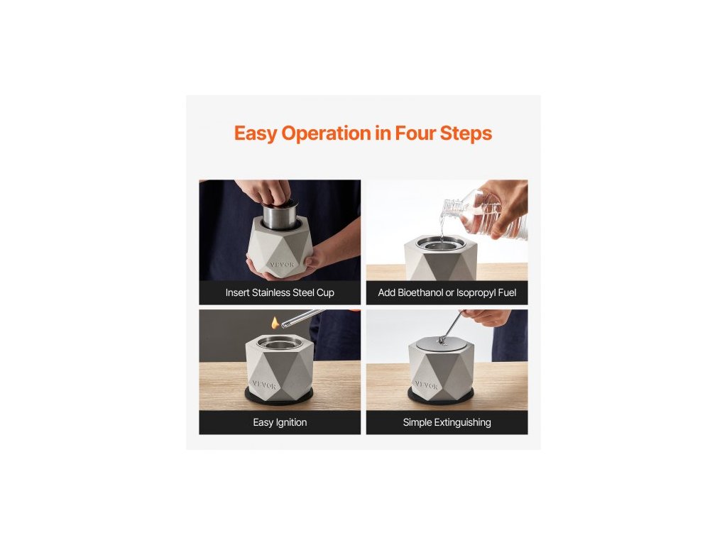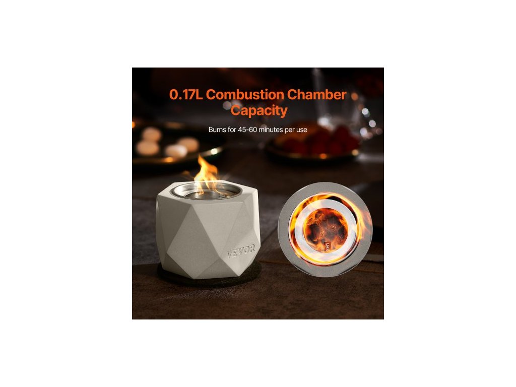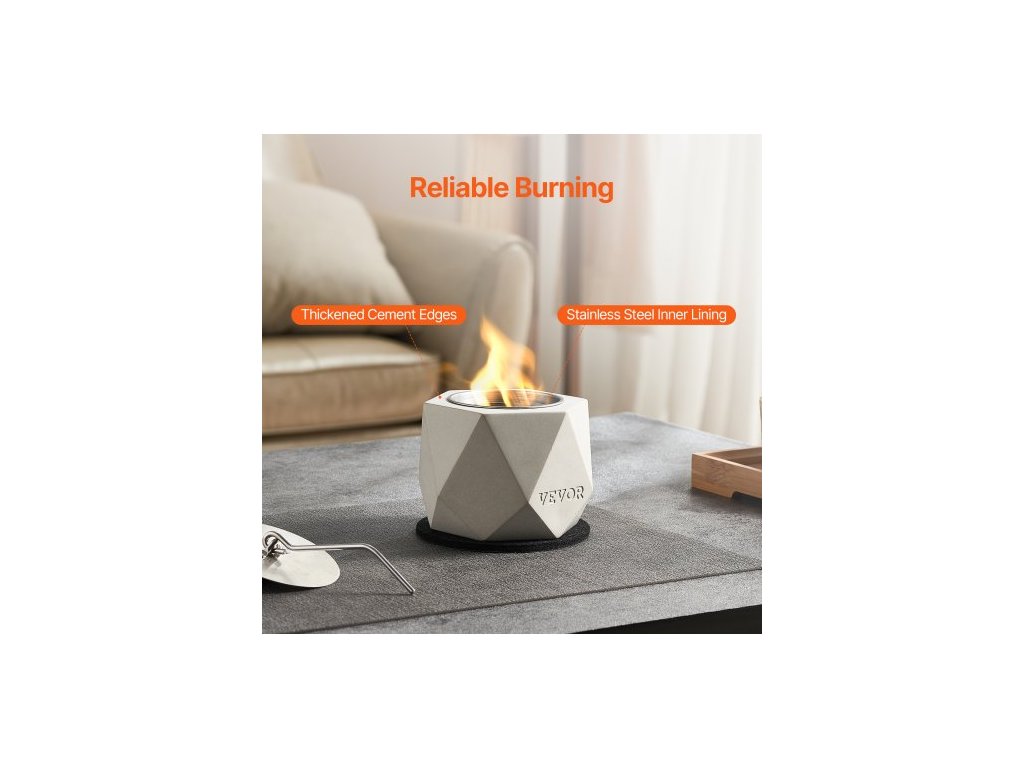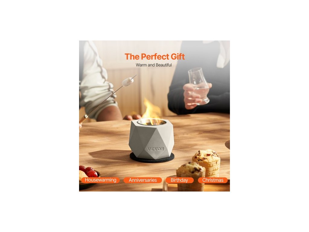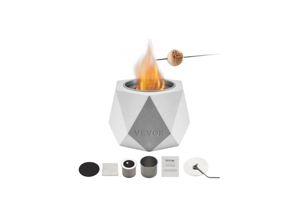 stolní ohniště, betonový stolní krb, vnitřní a venkovní dekorace, přenosný hořák na líh, výrobník smores, mini ohniště na terasu a balkon s hasicím přístrojem, světle šedá