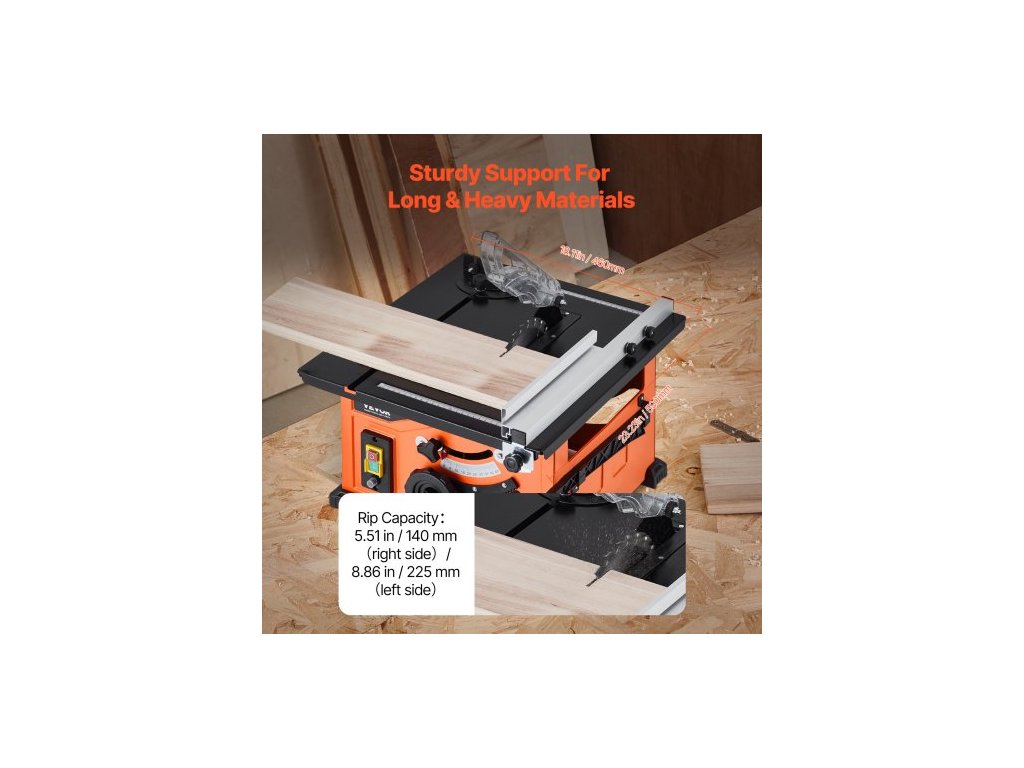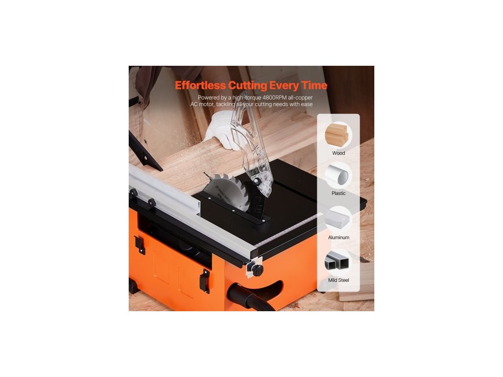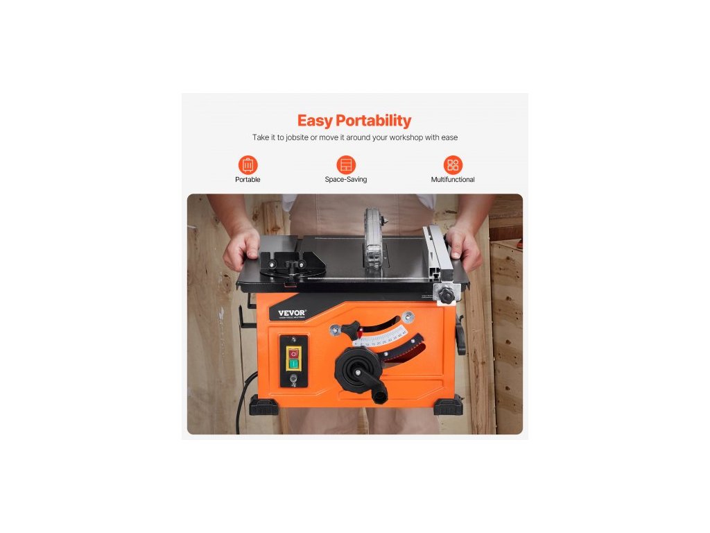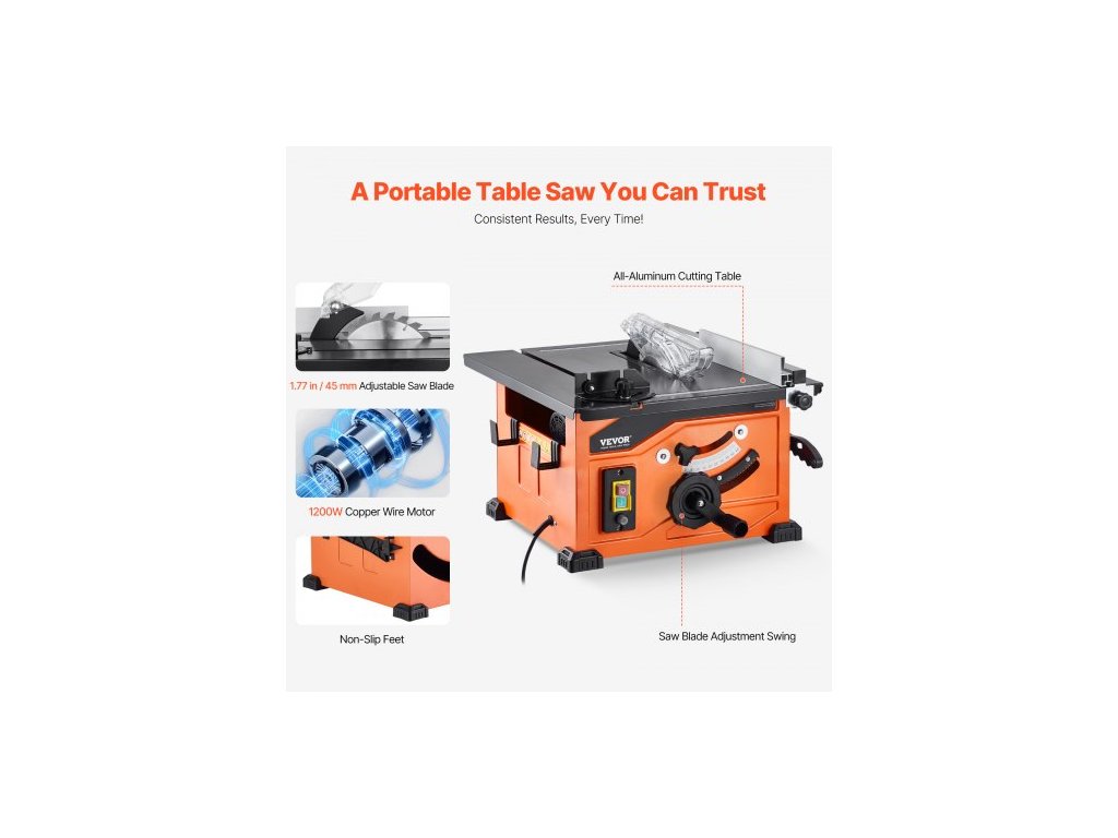 Stolní pila pro staveniště, 210 mm, přenosná kompaktní stolní pila 1200 W, maximální podélná kapacita 225 mm, řezná rychlost 4800 ot./min, s pilovým kotoučem s 24 zuby, posuvná pokosová měrka, pro kutilskou výrobu nábytku ze dřevaVysoká účinnost při každém řezu