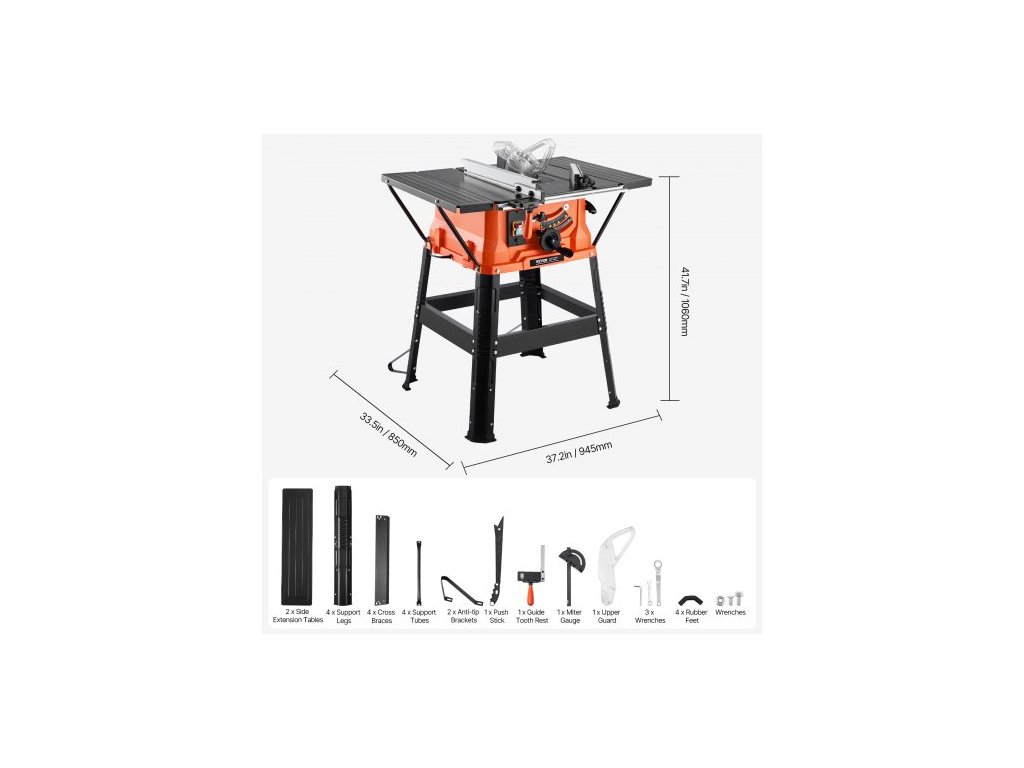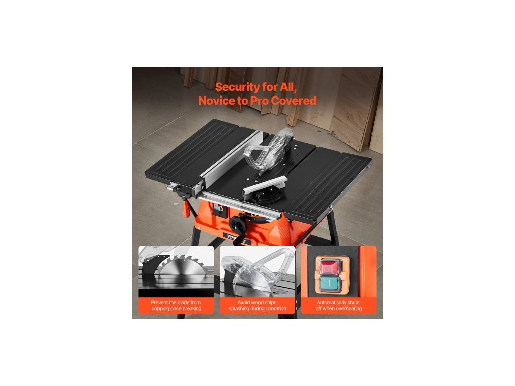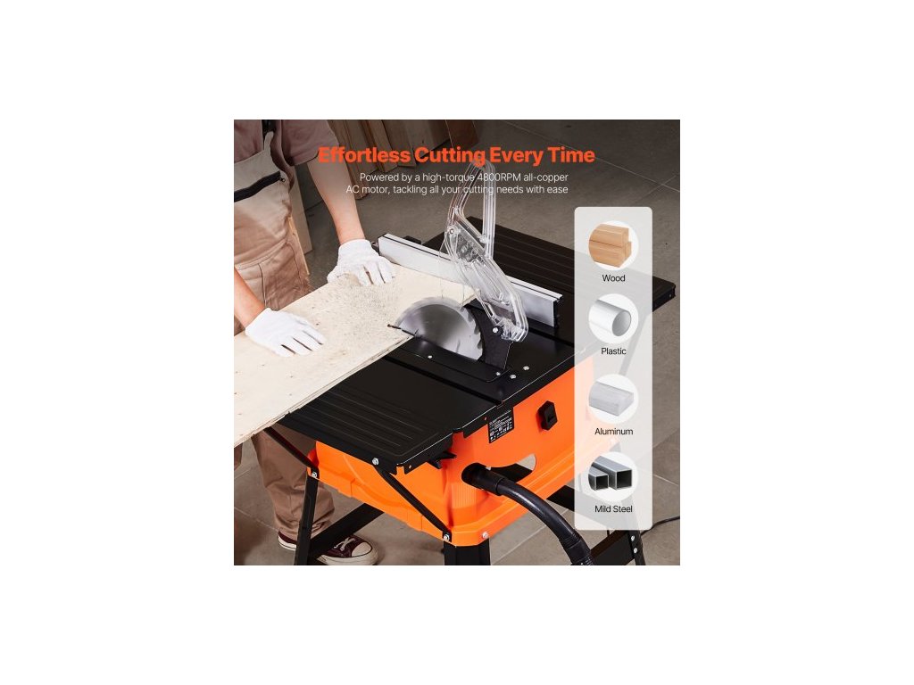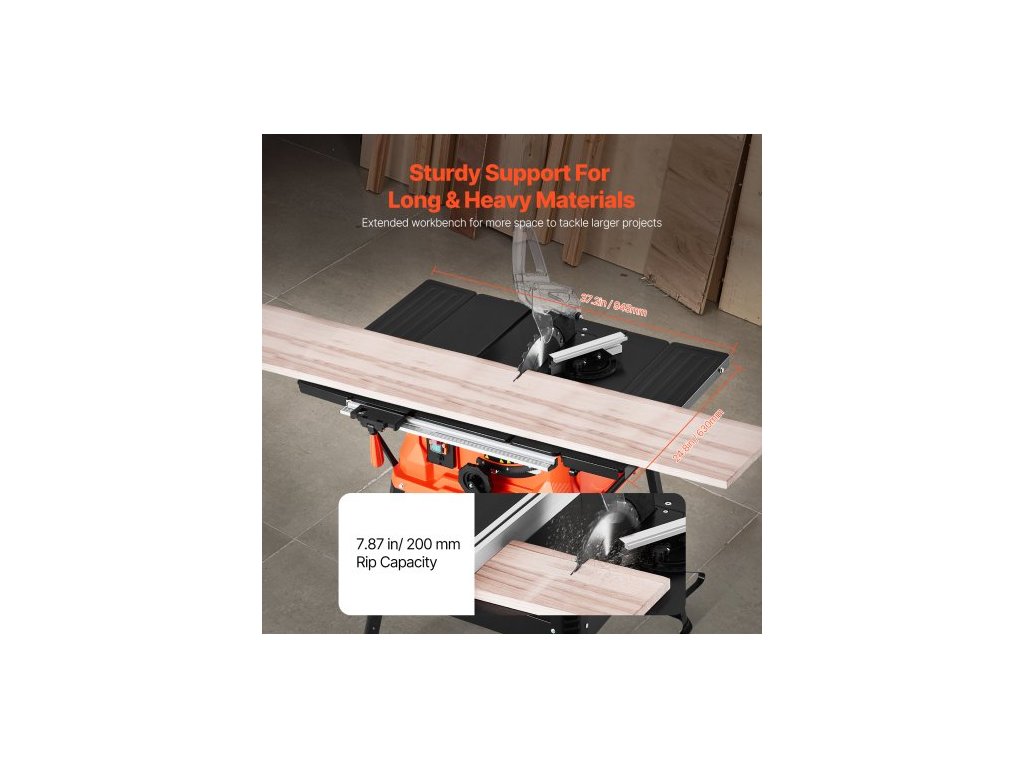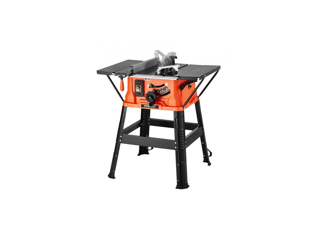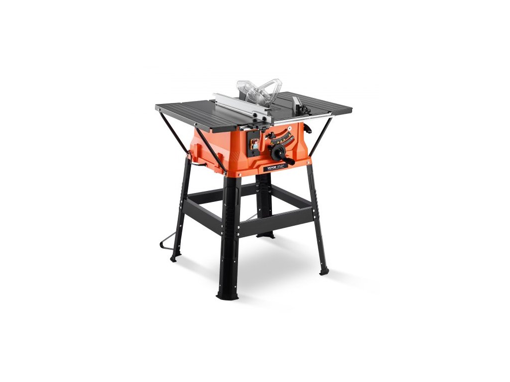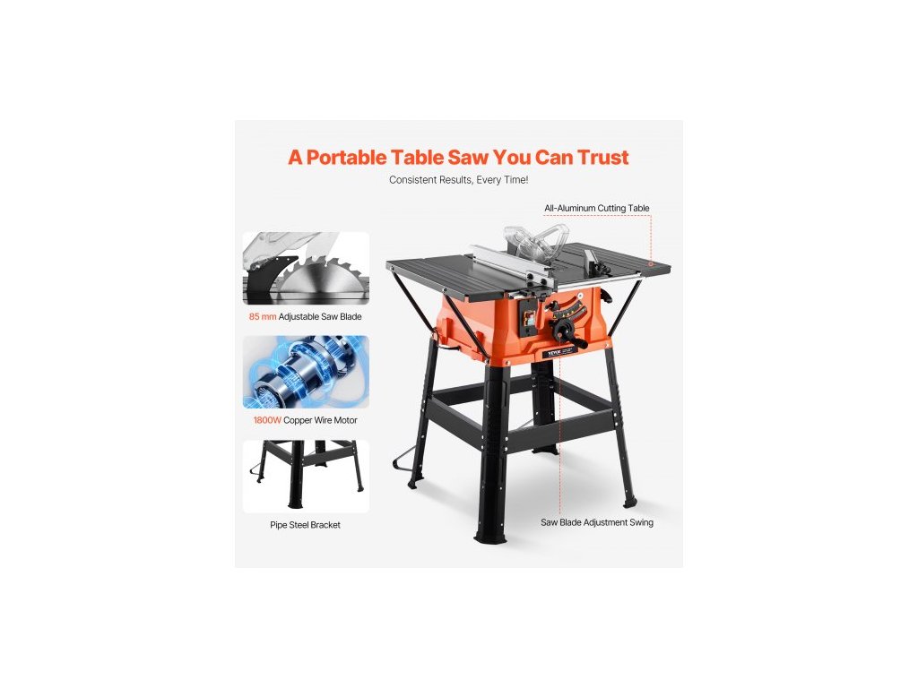 Stolní pila se stojanem, 254 mm, přenosná kompaktní stolní pila 1800 W, maximální podélná kapacita 200 mm, řezná rychlost 4800 ot./min, s pilovým kotoučem s 24 zuby, posuvná pokosová měrka, pro zpracování dřeva a výrobu nábytkuVysoká účinnost při každém řezu