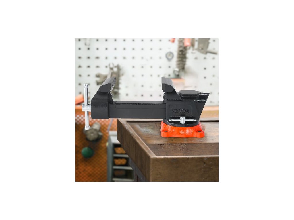 Stolní svěrák , šířka čelistí 127 mm(5"), maximální rozevření čelistí 127 mm(5"), víceúčelový svěrák s otočnou a zamykací základnou o 360°, hloubka vyložení 71 mm(2,8"), vysoce odolný pracovní svěrák z tvárné litiny s kovadlinou, pro upínání kulatých trubekVynikající pevnost a houževnatost