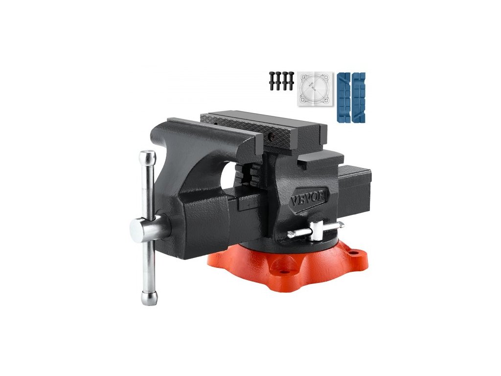 Stolní svěrák , šířka čelistí 140 mm (5,5"), maximální rozevření čelistí 140 mm (5,5"), víceúčelový svěrák s otočnou a zamykací základnou o 360°, hloubka vyložení 71 mm (2,8"), vysoce odolný stolní svěrák z tvárné litiny, obousměrné čelisti pro
