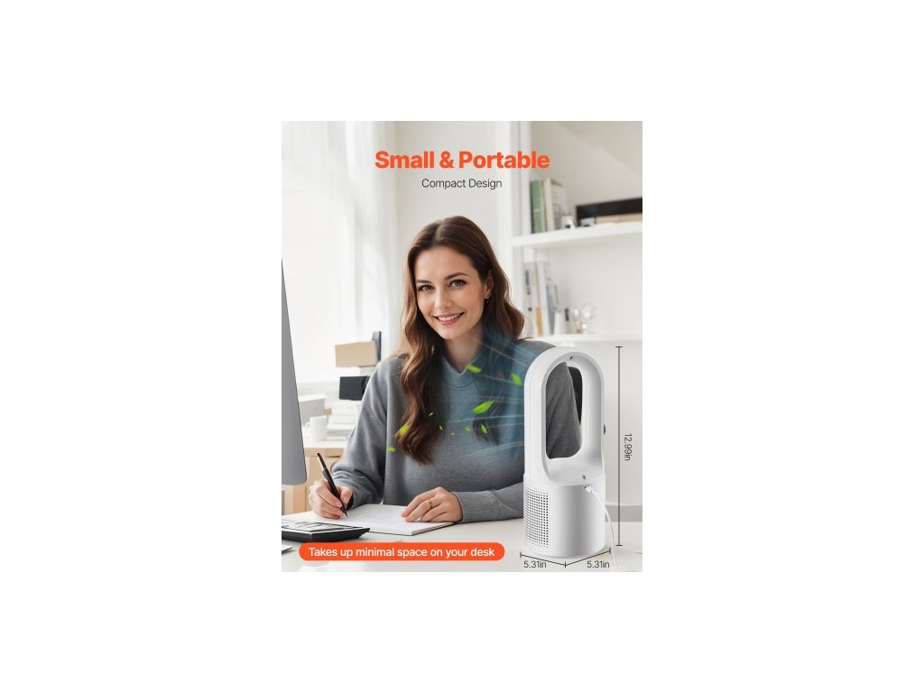 Stolní ventilátor bez lopatek, 12,99 palce, osobní přenosný stolní ventilátor vhodný pro děti, 6stupňový USB tichý chladicí malý věžový ventilátor s tlačítkovým ovládáním, fouká studený vzduch pro kancelář i domácnost (zapojuje se do zásuvky, bez baterie)Mimořádně nízká spotřeba energie