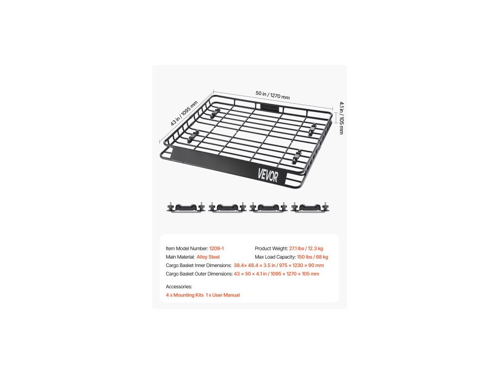 Vnější rozměry koše: 1095 x 1270 x 105 mm,Číslo modelu položky: 1209-1,Hmotnost výrobku: 12,3 kg,Maximální nosnost: 68 kg,Hlavní materiál: Legovaná ocel