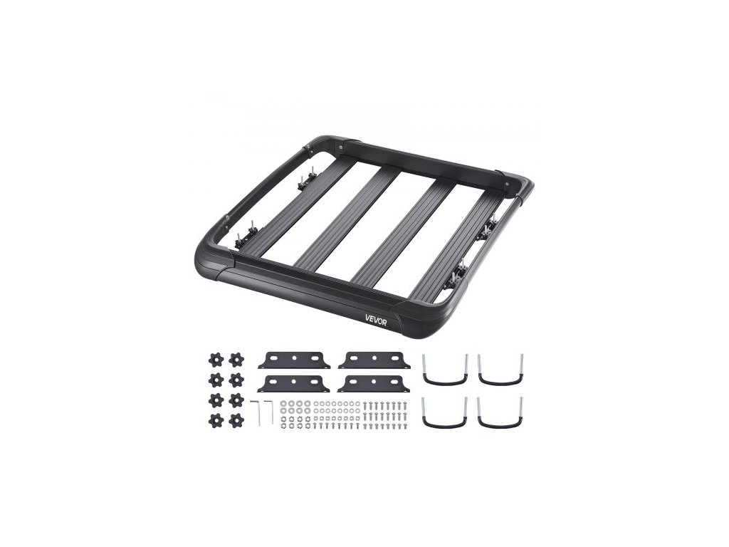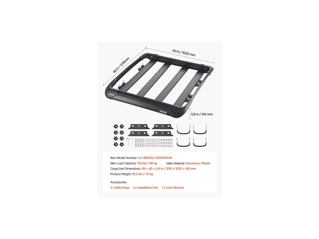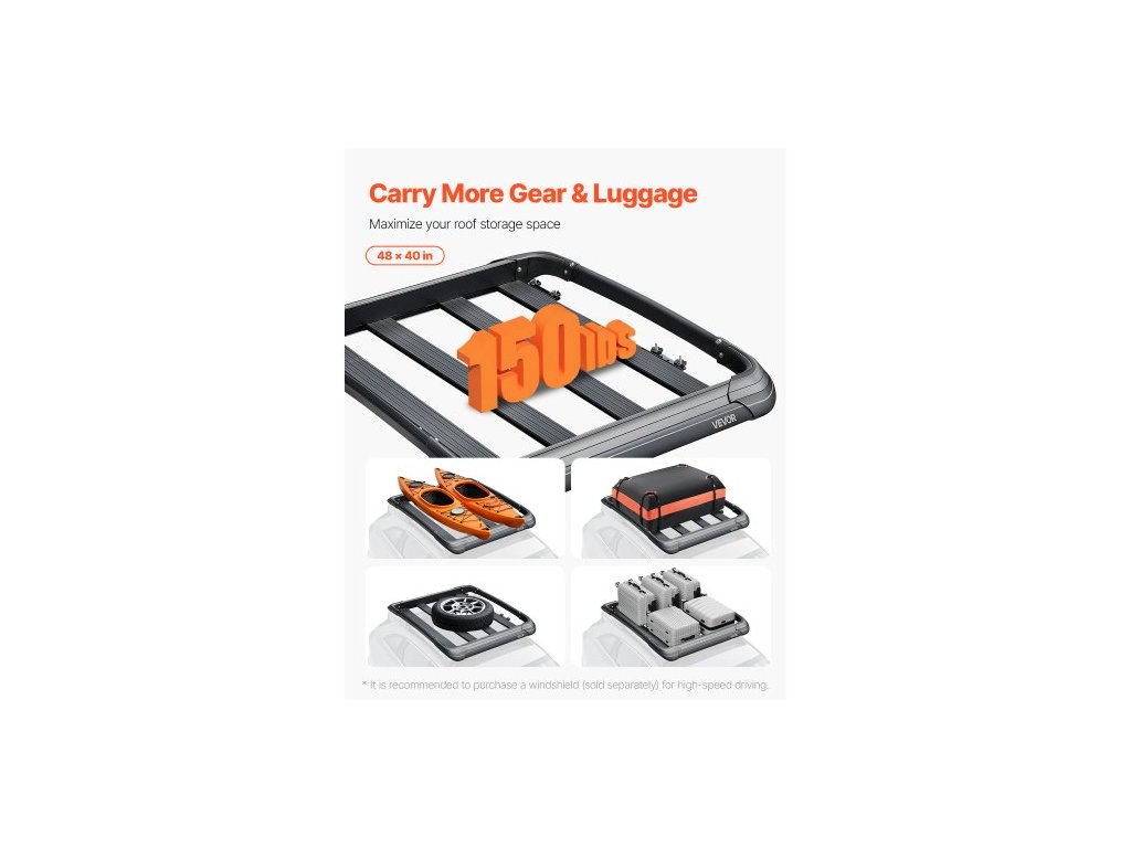 Střešní nosič , 48 x 40 x 5,6 palce, univerzální střešní koš, držák zavazadel na střechu auta s maximální nosností 150 liber, plot 4,1 palce, antikorozní legovaná ocel, větrná kapotáž, pro SUVExtra úložný prostor