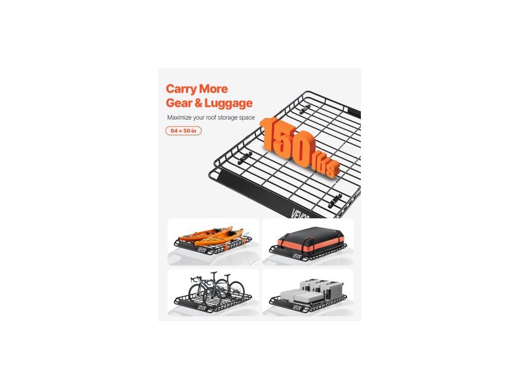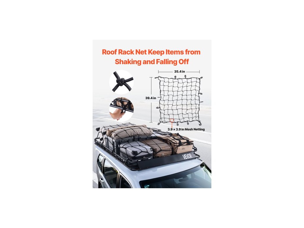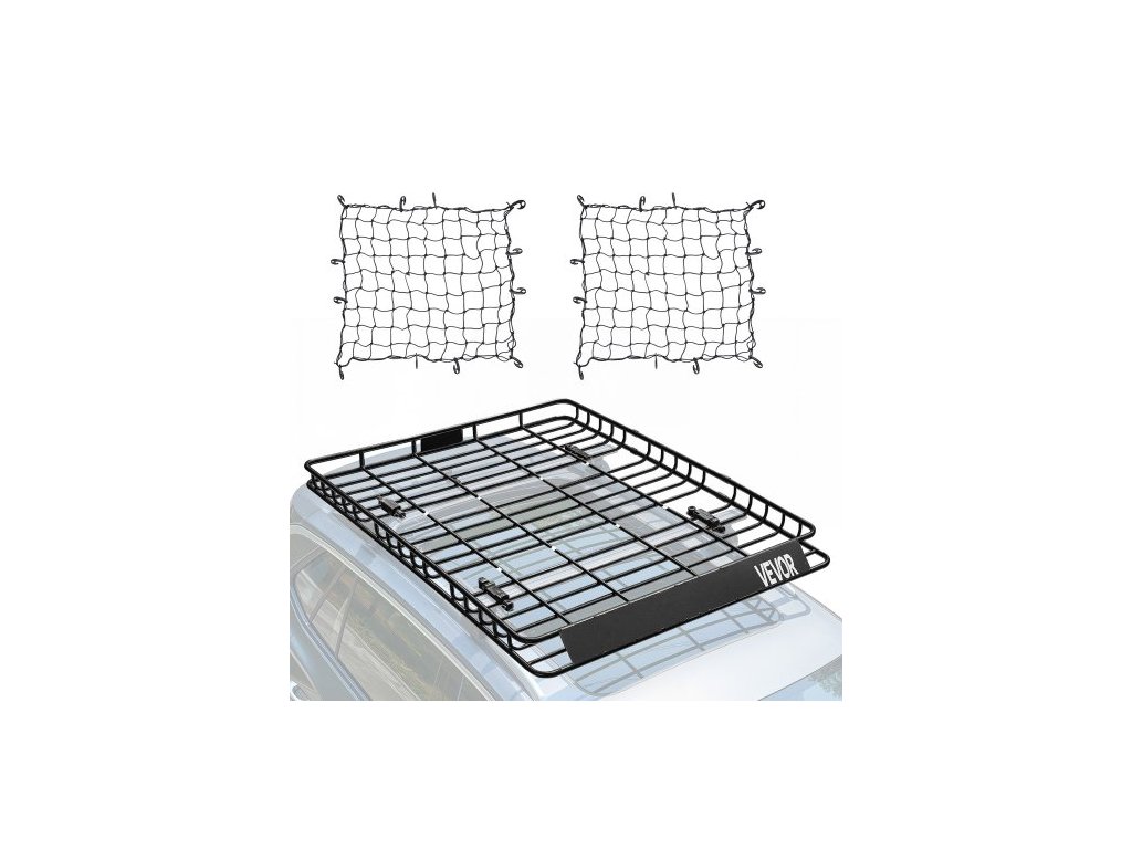 Střešní nosič , 64 x 50 x 4,1 palce, univerzální střešní nosič se dvěma sítěmi o rozměrech 35,4 x 39,4 palce, držák zavazadel na střechu o maximální nosnosti 150 liber, plot 4,1 palce, legovaná ocel s antikorozní úpravou, pro SUV a nákladní