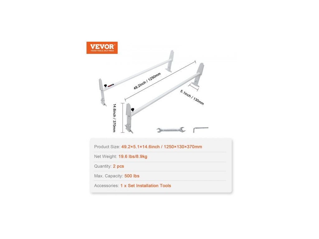 Rozsah výšky: 6,3-7,7 palce/160-195 mm,Typ montáže: Instalace na okapy,Číslo modelu položky: BYCD-004,Rozsah délky: 47,2-78,7 palce/1200-2000 mm,Množství: 2 ks,Max. Nosnost: 227 kg, Čistá hmotnost: 8,9 kg, Rozměry výrobku: 1250 x 370 x 130 mm