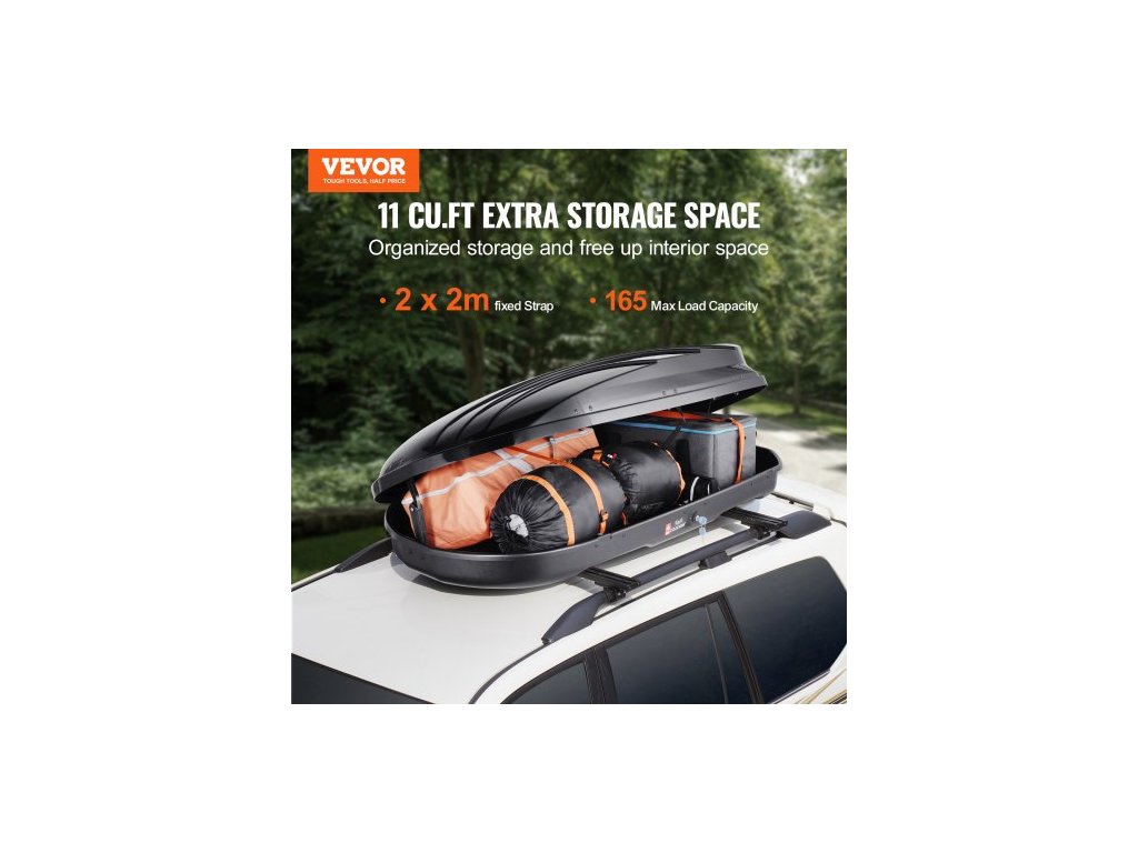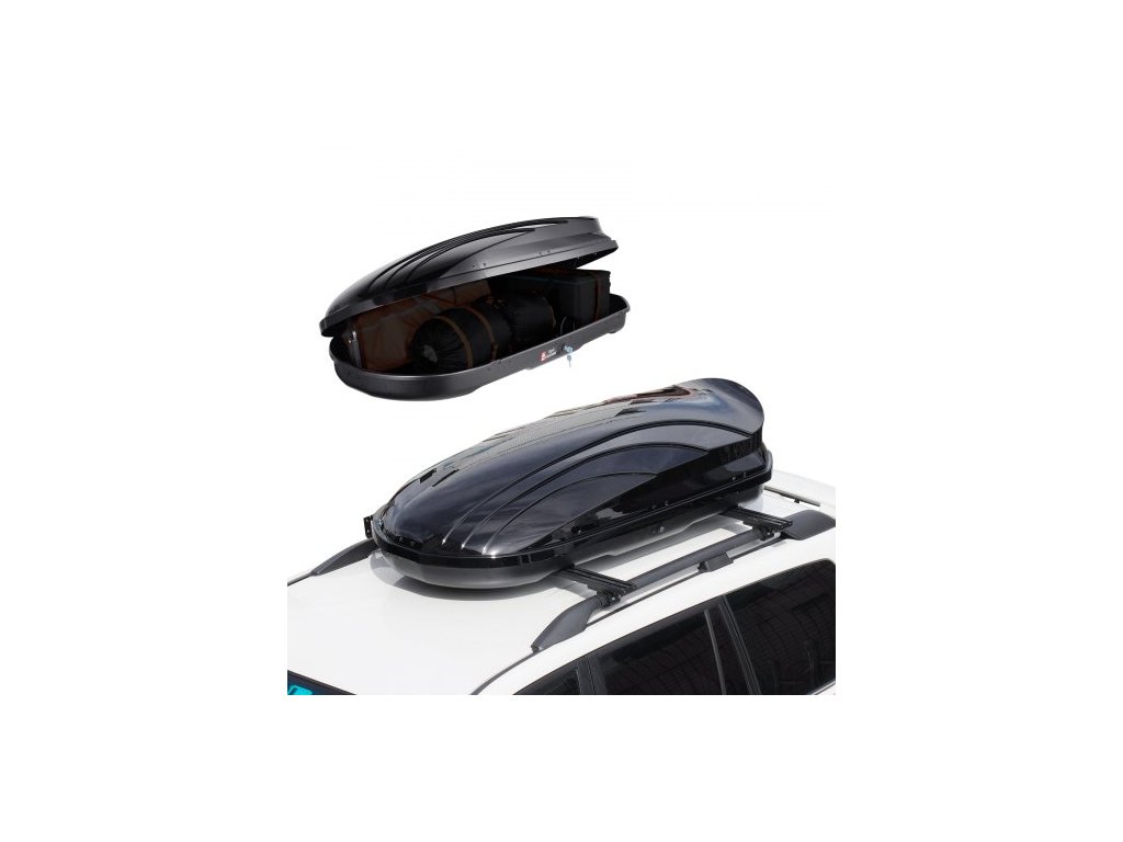 Střešní nosič , střešní box o objemu 11 krychlových stop, střešní box s tvrdou skořepinou z ABS plastu, s oboustranným otevíráním a 2 zesílenými popruhy, aerodynamický, vhodný pro většinu příčných nosníků, pro osobní automobily, kombi, SUV, černý
