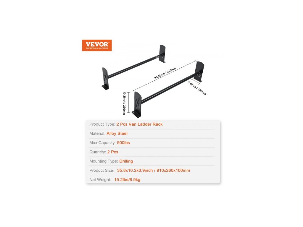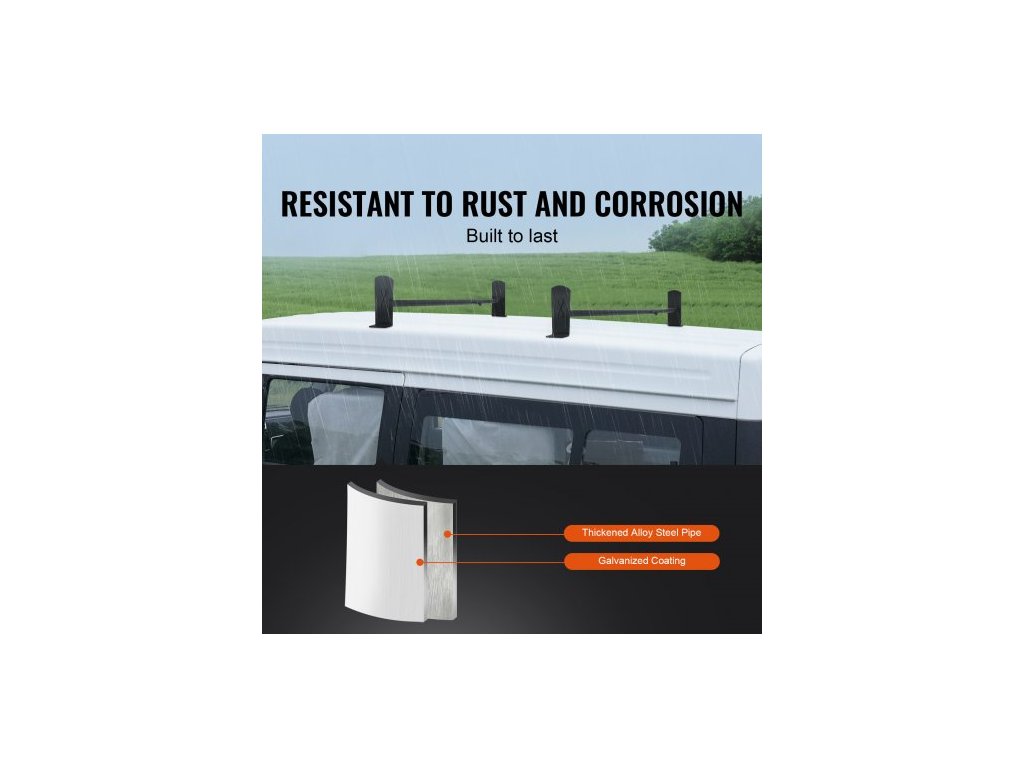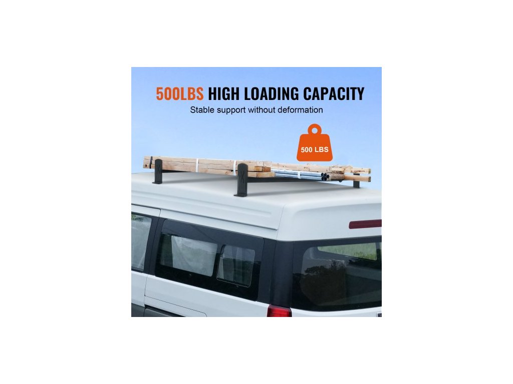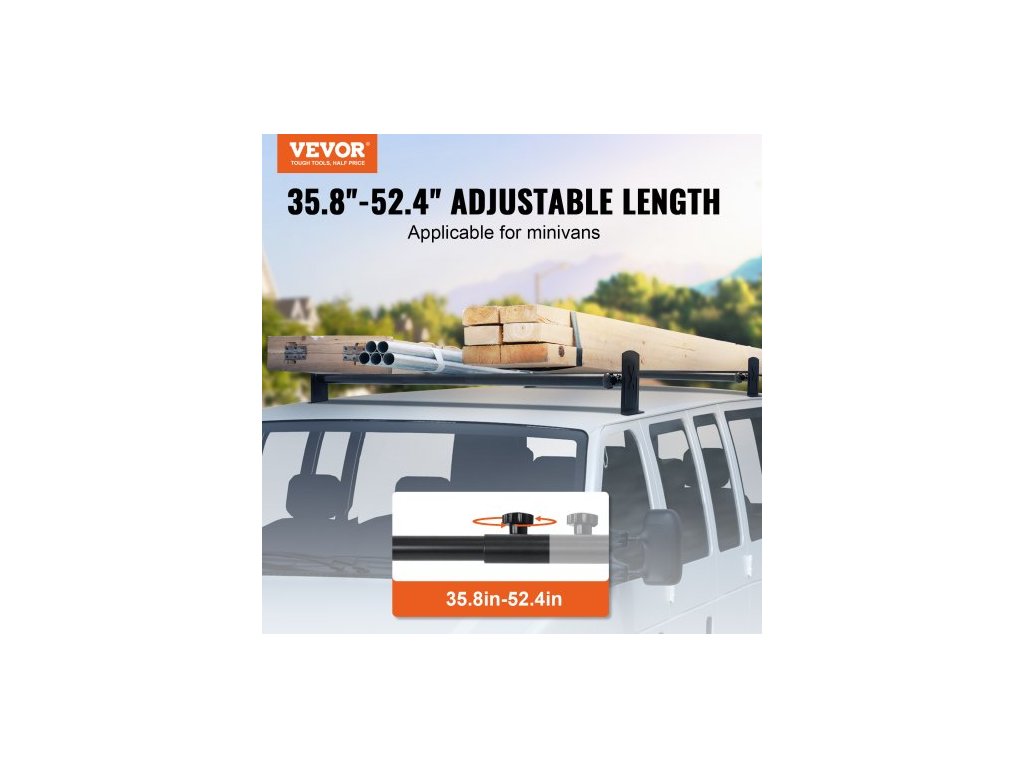 Střešní nosič žebříků pro dodávky, 2 tyče, střešní nosiče z legované oceli, nosnost 227 kg, nastavitelná délka 910–1330 mm, nosič žebříků kompatibilní s vozy Chevrolet Express, GMC Savana atd., vrtání do otvorunosnost 500 lb