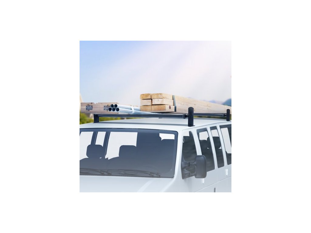 Střešní nosič žebříků pro dodávku, 2 tyče z legované oceli, nosnost 227 kg, nastavitelná délka 910-1330 mm, nosič žebříků pro dodávku kompatibilní s Chevrolet Express, GMC Savana atd., montáž k vrtání