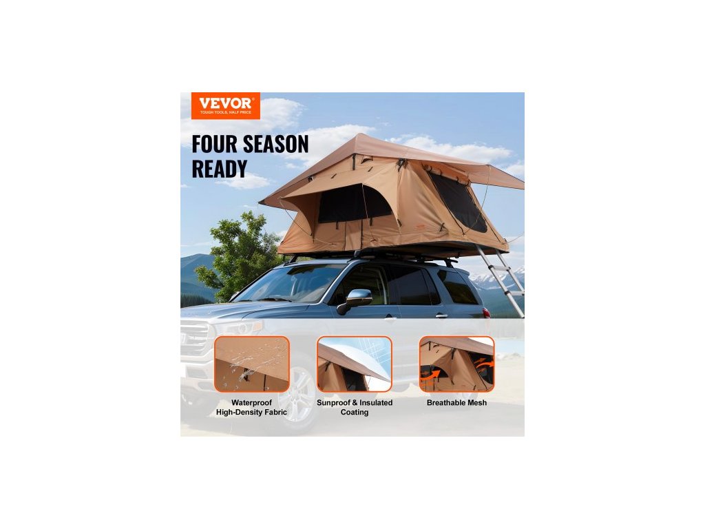 Střešní stan s pevnou skořepinou, střešní stan Naturnest s pevnou skořepinou pro 2-3 osoby, skládací střešní stan s pevnou skořepinou a teleskopickým žebříkem, matrací z PVC, krycí vak, vodotěsný pro Jeep, SUV, dodávku, pickupVenkovní použití