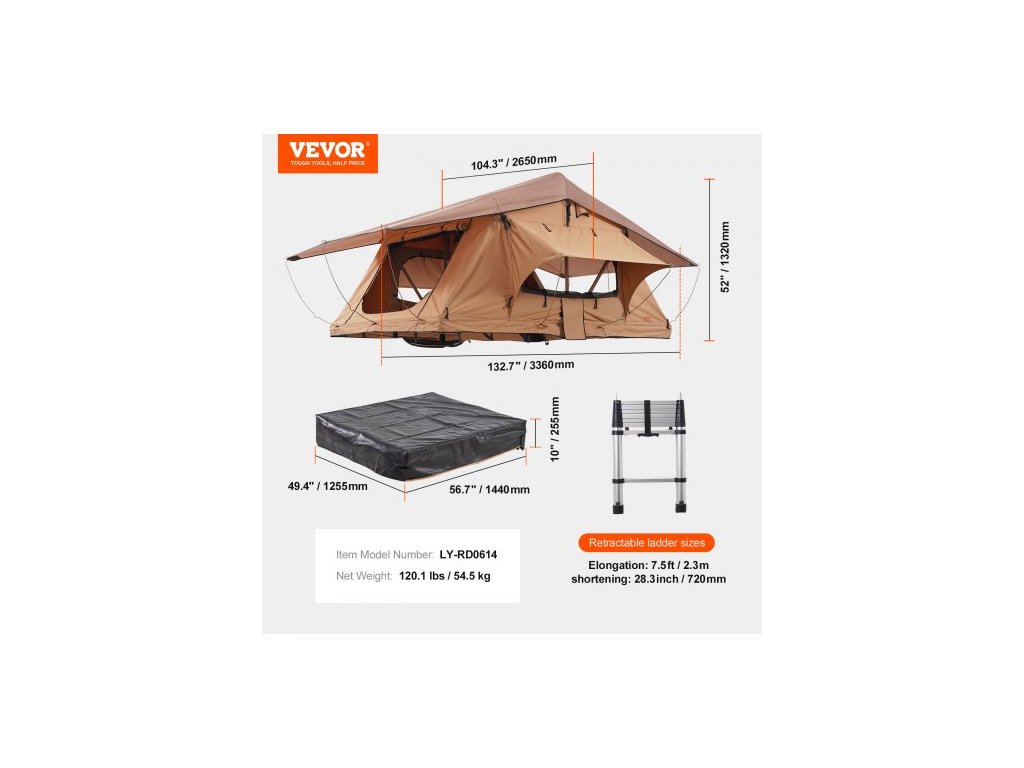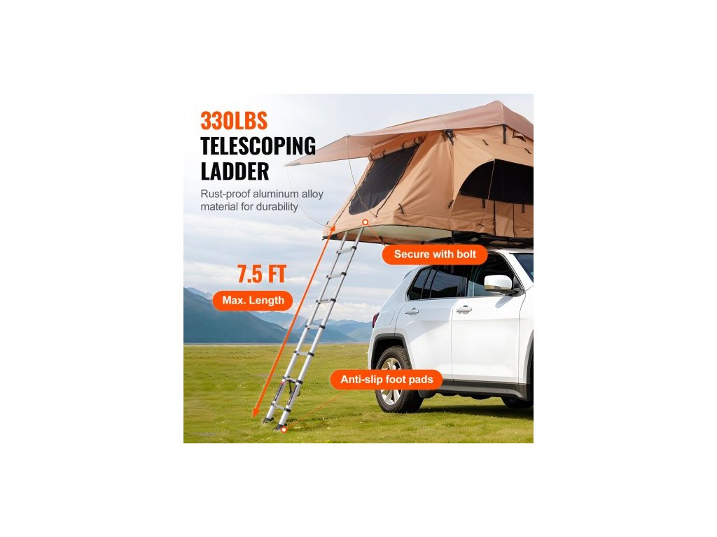 Střešní stan s tvrdou skořepinou, střešní stan Naturnest s tvrdou skořepinou pro 2-3 osoby, skládací střešní stan s tvrdou skořepinou a teleskopickou matrací s žebříkem, PVC krycí vak, vodotěsný pro Jeep, SUV, dodávku, pickup.
