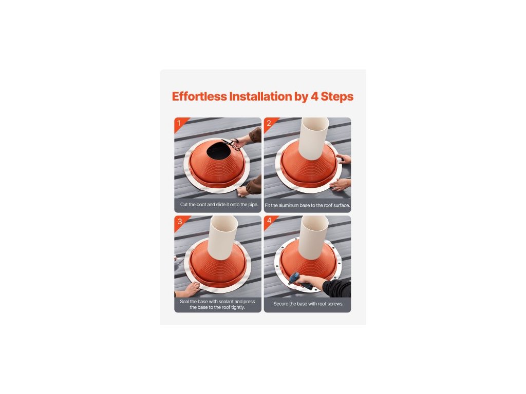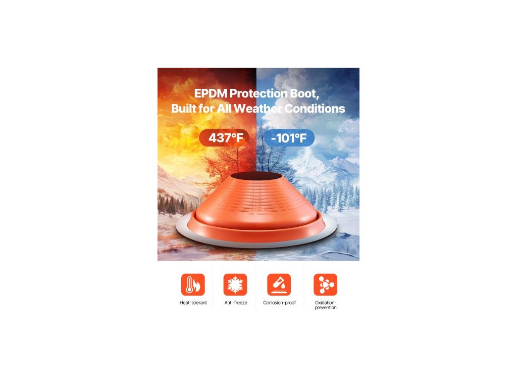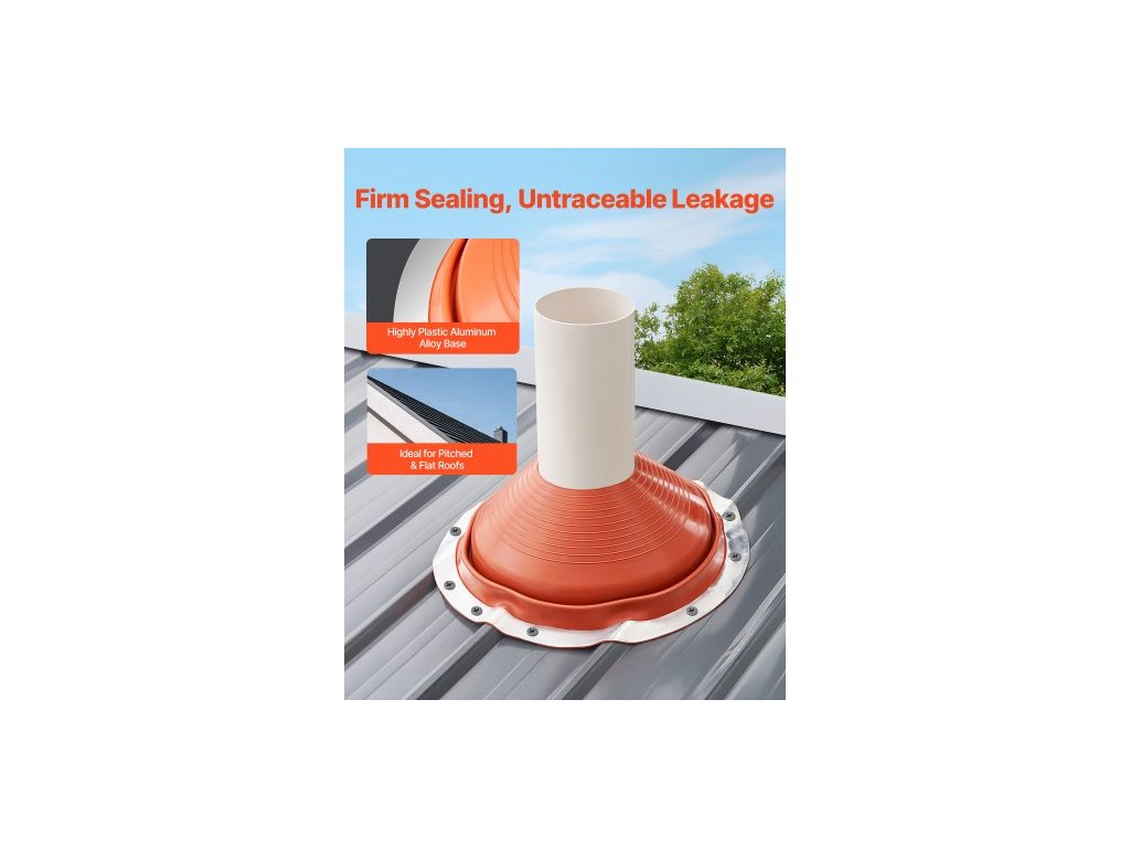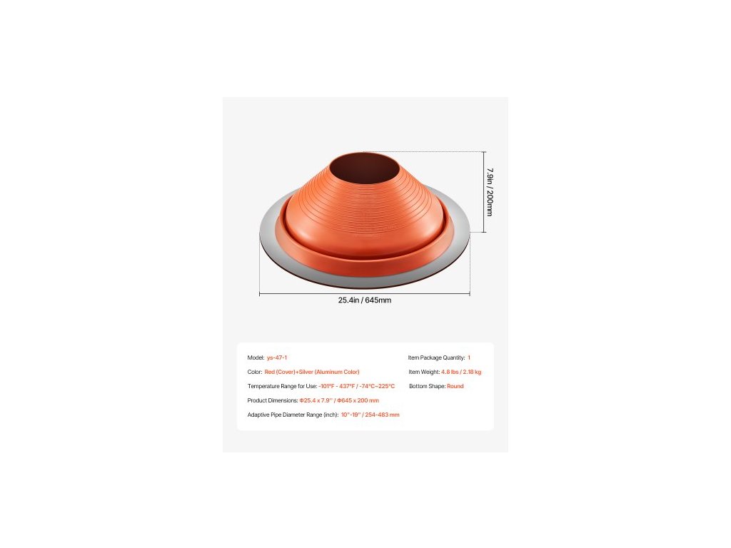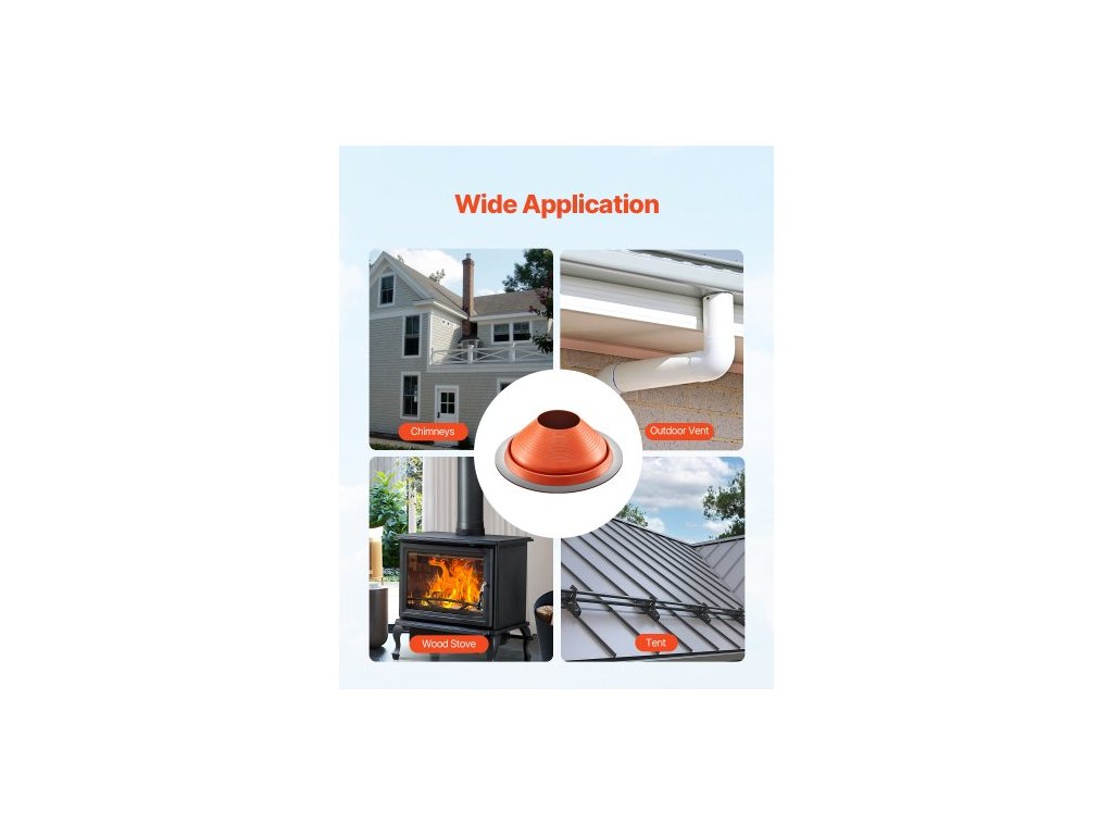 střešní těsnění, vhodné pro potrubí o vnějším průměru 10" až 19", flexibilní silikonové střešní těsnění, vysokoteplotní -101℉ až 437℉, odolná kulatá červená kovová základna, pro komín, kamna na dřevo a venkovní větrací potrubíSkvělá přizpůsobivost