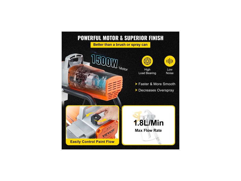 Stříkací pistole , bezvzduchová stříkací pistole 1500 W, hadicová stříkací pistole 3000 PSI pro domácnosti, lodě, mosty, věže, sloupy a další velké dlouhodobé průmyslové kovové konstrukce