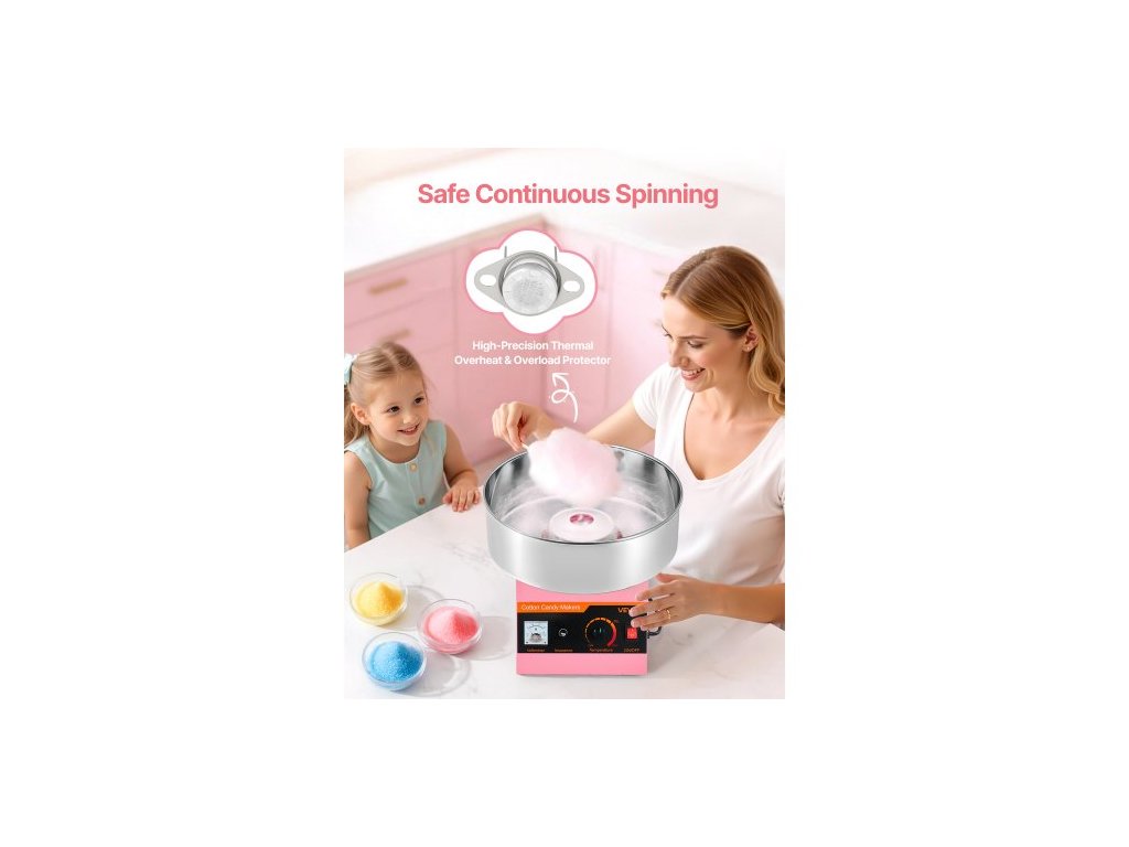 Stroj na cukrovou vatu pro komerční použití, elektrický výrobník cukrové vaty 1000 W, snadné použití s nerezovou miskou o průměru 38 cm a odměrkou na cukr, vyrábí tvrdé cukrovinky pro domácí dětské narozeniny, rodinné oslavy, růžováSnadná instalace a odpojení