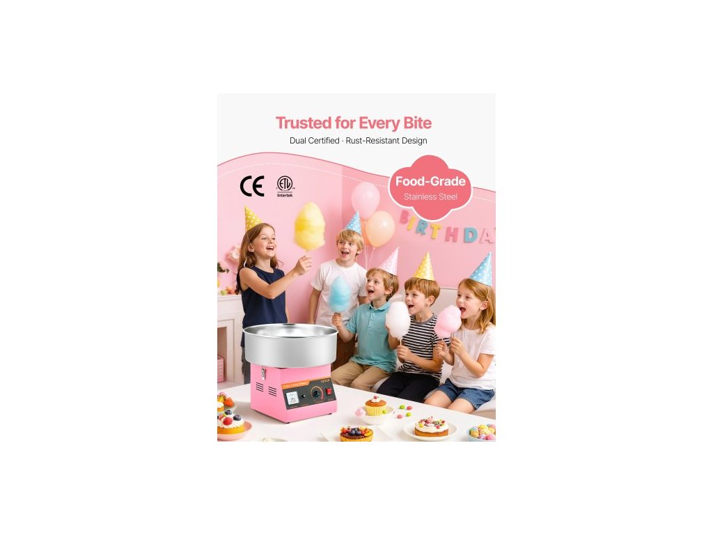 Stroj na cukrovou vatu Commercial, elektrický výrobník cukrové vaty 1000 W, snadné použití s miskou z nerezové oceli 38 cm a odměrkou na cukr, vyrábí tvrdé cukrovinky pro domácí dětské narozeniny, rodinné oslavy, růžový