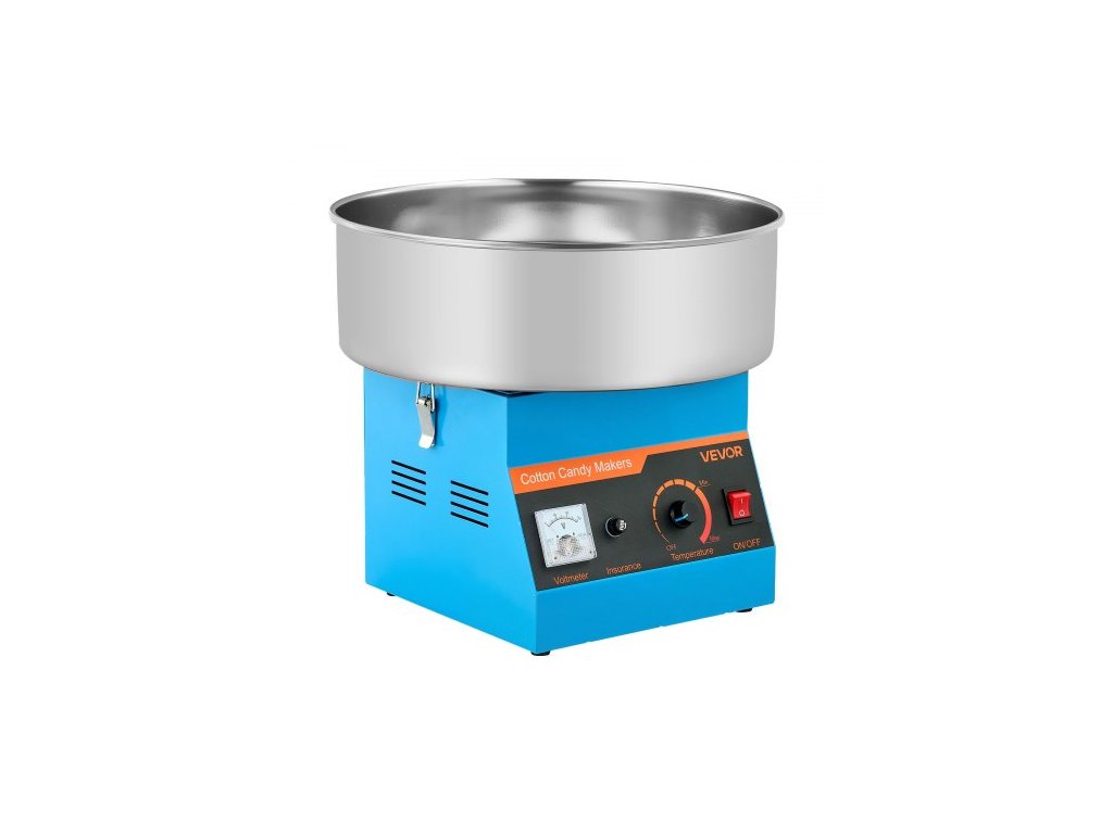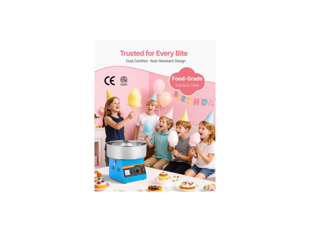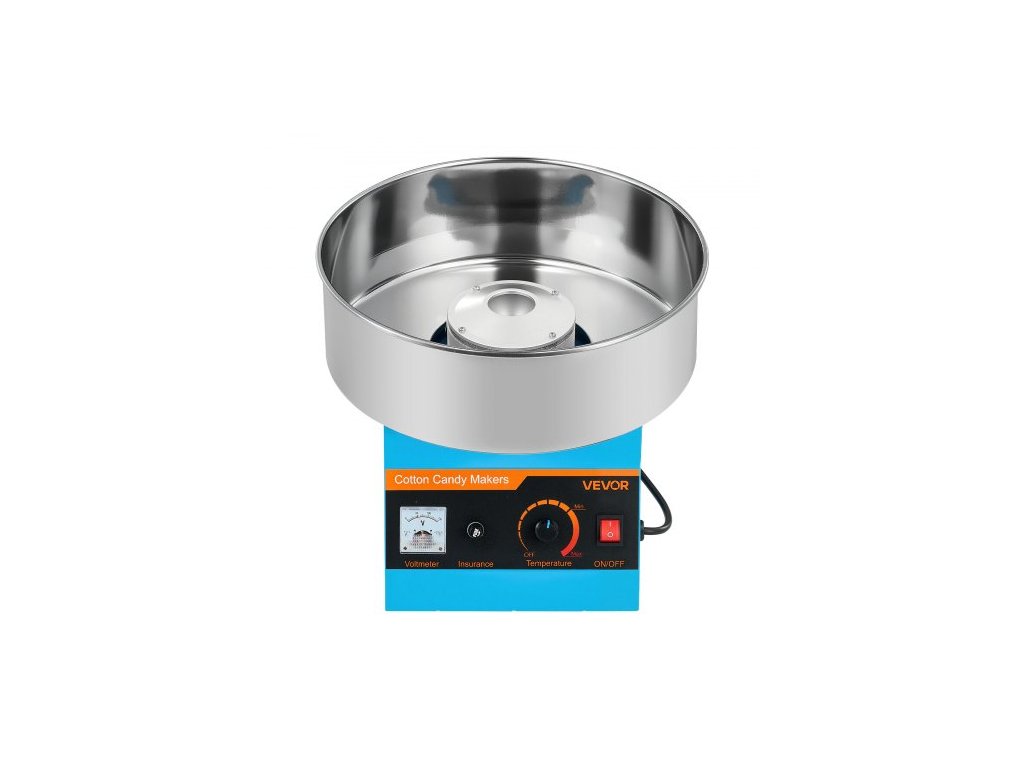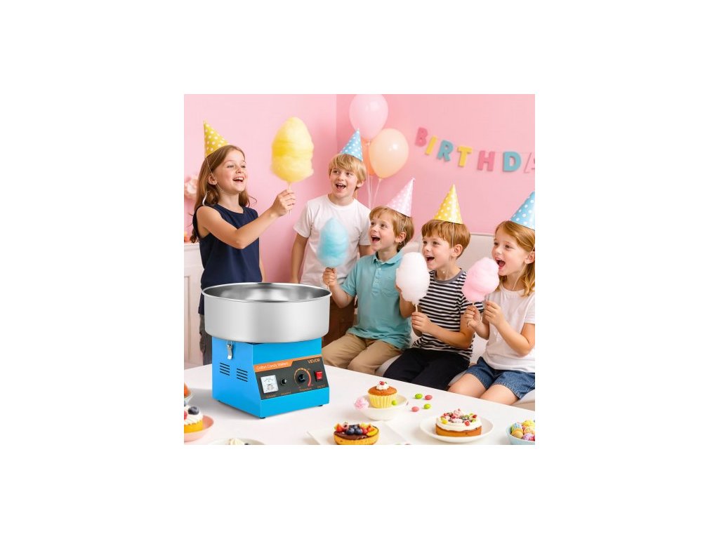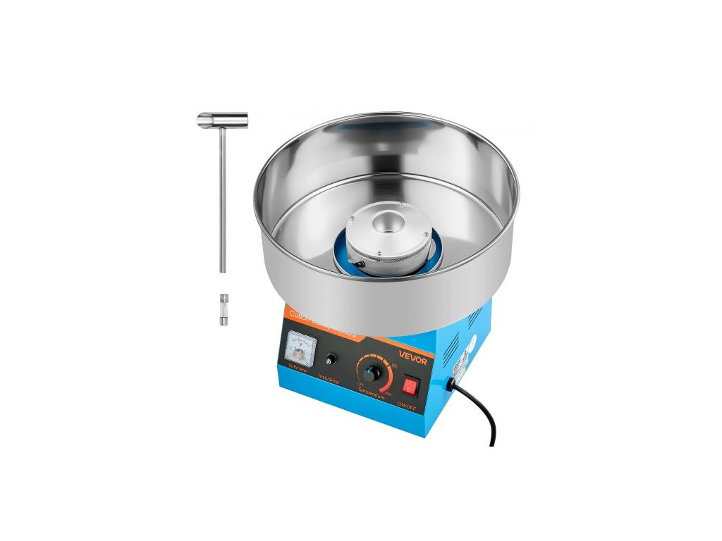Stroj na cukrovou vatu pro komerční použití, elektrický výrobník cukrové vaty o výkonu 1000 W, snadné použití s miskou z nerezové oceli o průměru 38 cm a odměrkou na cukr, vyrábí tvrdé cukrovinky pro domácí, dětské narozeniny, rodinné oslavy, modrý