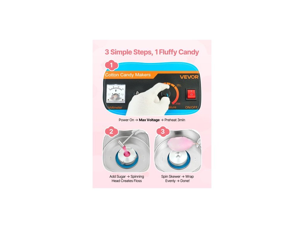 Jmenovitý výkon motoru: 30 W, Průměr cukřenky: φ14,96 palce / φ38 cm, Výška cukřenky: 4,8 palce / 12 cm, Celkový výkon: 1000 W, Číslo modelu položky: MHTJJPXMO1-3S, Doba předehřívání: 2–3 minuty, Hmotnost výrobku: 10,65 lb / 4,83 kg, Kapacita cukrové hlavice: 3,7 oz / 105 g, Maximální otáčky motoru: 3500 ot/min Rozměry: 14,96 x 14,96 x 13,31 palce / 38 x 38 x 34 cm