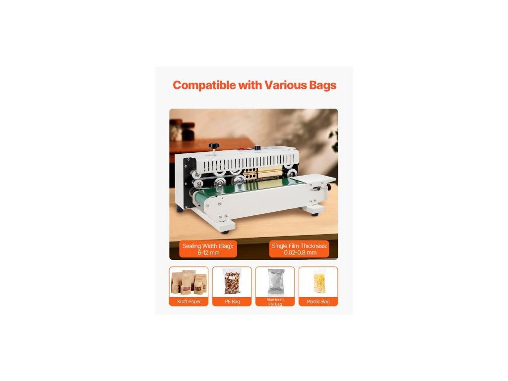 Stroj na kontinuální svářečku sáčků , šířka svaru 6–12 mm, horizontální svářečka s digitální regulací teploty, svářečka sáčků z uhlíkové oceli pro fólie z plastových sáčků o tloušťce 0,02–0,8 mm