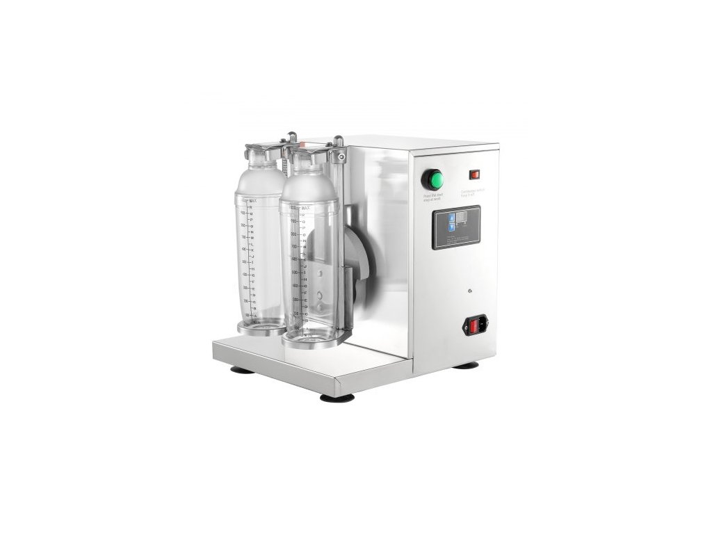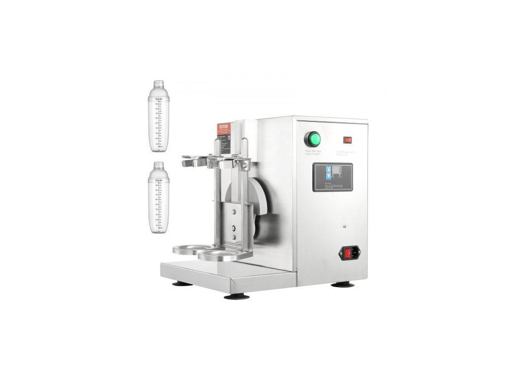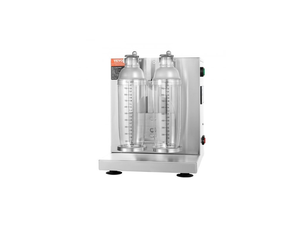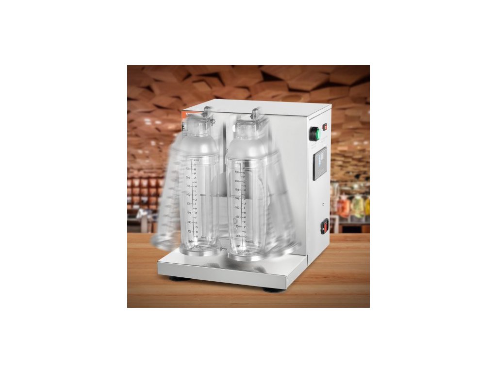 stroj na mléčné koktejly, komerční šejkr na mléčný čaj 120 W, dvouhlavý mixér na mléčné koktejly, nastavitelný čas 0–180 s, s 1litrovým PC hrnkem, pro obchod s mléčným čajemRychlé šejkrování