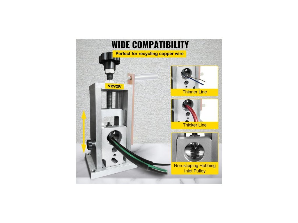 Stroj na odizolování drátů , 1,5-40 mm poháněný vrtačkou, ruční odizolovač mědi s tepelně zpracovanou ocelovou čepelí s ultra dlouhou životností, kompaktní a přenosný pro odlupování a recyklaci šrotu kabelůKonstrukce z hliníkové slitiny