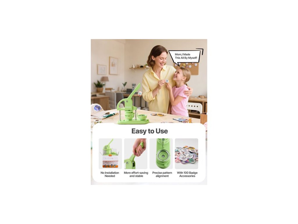 Stroj na výrobu knoflíků , 58 mm, plastový stroj na výrobu odznaků se 100 díly na knoflíky, kruhový řezák a šestihranné klíče, zesílená ergonomická rukojeť, pro výrobu odznaků, personalizovaných odznaků a klíčenek, zelenáErgonomická rukojeť