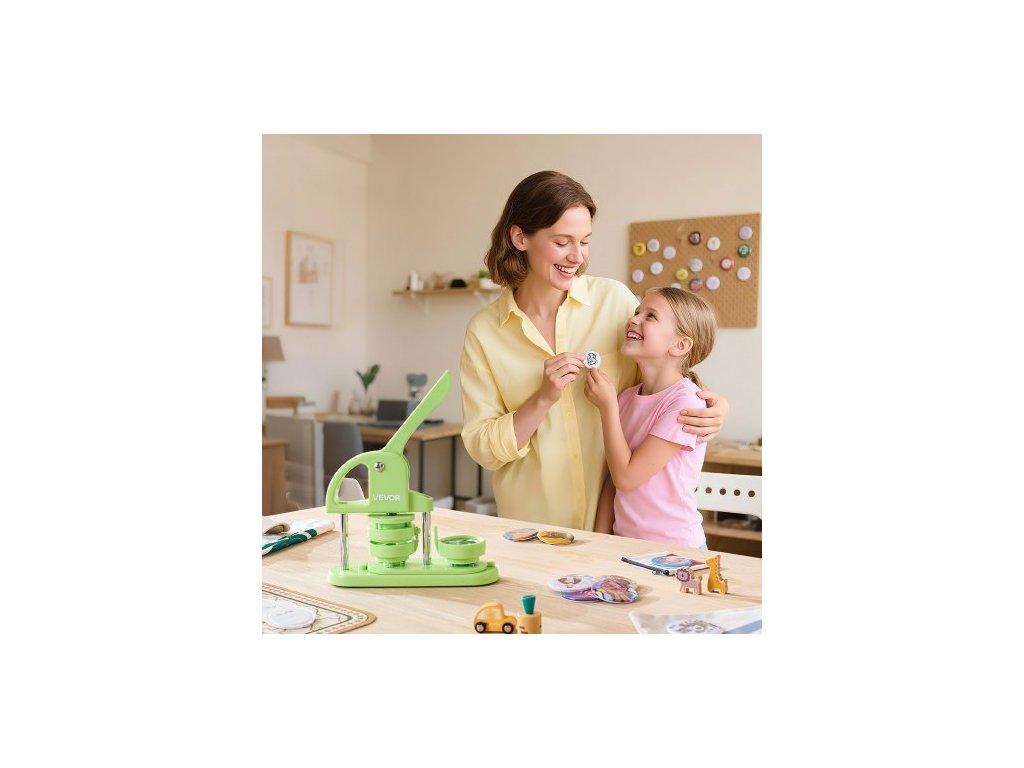 Stroj na výrobu knoflíků , 58 mm, plastový výrobník odznaků se 100 díly na knoflíky, kruhový řezák a šestihranné klíče, zesílená ergonomická rukojeť, na výrobu odznaků, personalizovaných odznaků a klíčenek, zelený