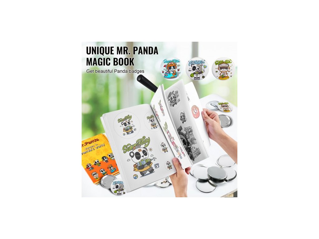 Stroj na výrobu knoflíků , sada na děrování odznaků 32 mm (1,25 palce), dětské dárky pro kutily, výroba odznaků, potřeby na výrobu knoflíků s 500 díly na knoflíky a kruhovým vykrajovátkem a kouzelnou knihouKouzelná kniha pana Pandy