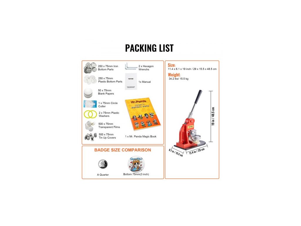 Stroj na výrobu knoflíků , sada na děrování odznaků 75 mm (3 palce), dětské dárky pro kutily, výroba odznaků, potřeby na výrobu knoflíků s 500 díly na knoflíky a kruhovým vykrajovátkem a kouzelnou knihouKouzelná kniha pana Pandy