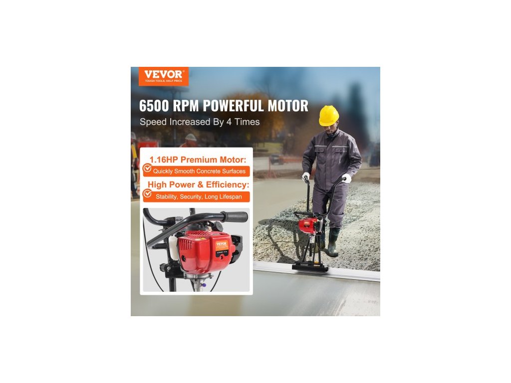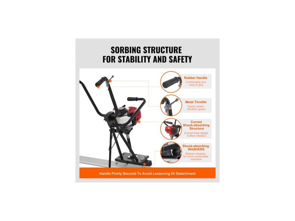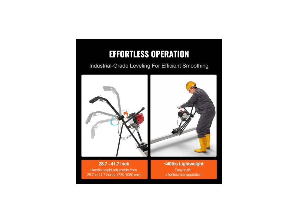 Strojní lišta na plynový beton , se sadou rovných lišt z hliníkové desky o průměru 2445 mm, čtyřtaktní vibrační motor pro konečnou úpravu betonu s výškově nastavitelnými rukojeťmi, vysoce účinné nářadí na beton 6500 ot./min.Výkonné rychlé vyhlazování