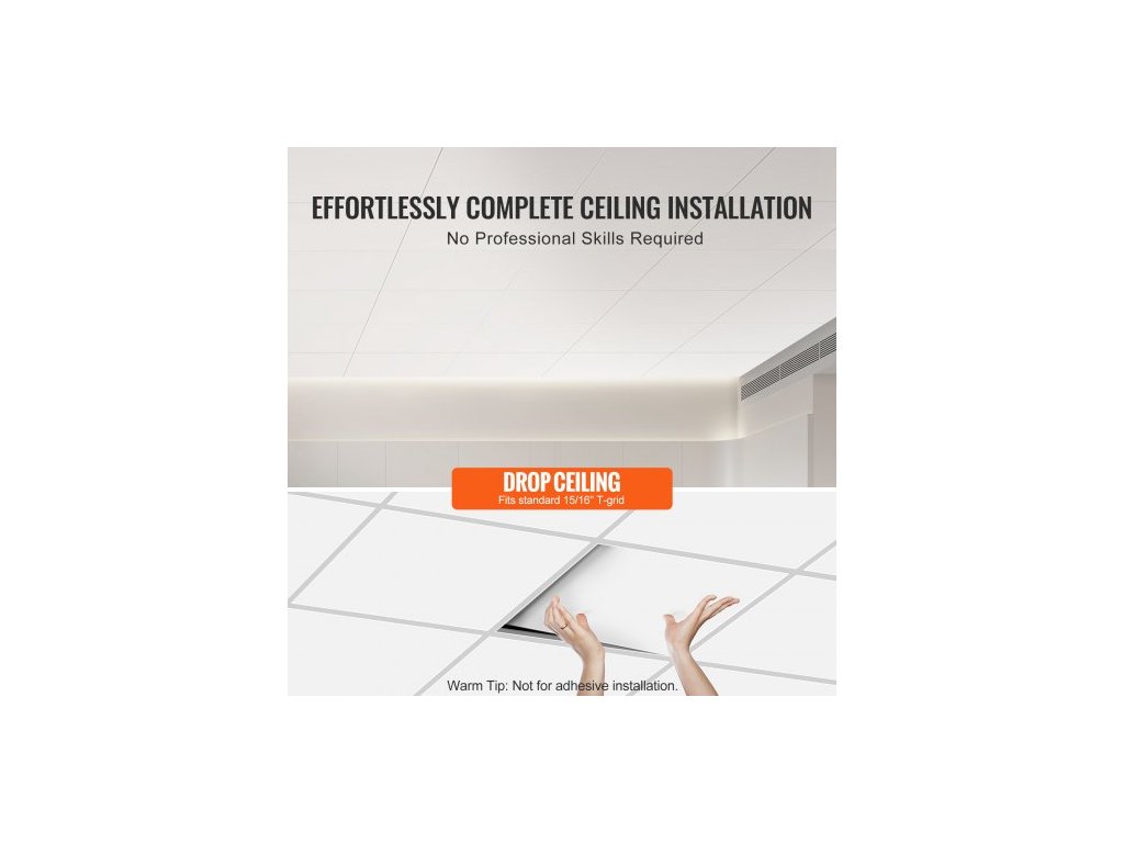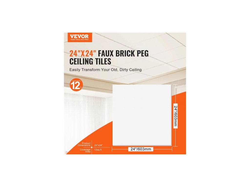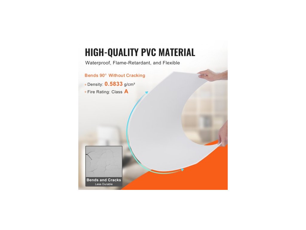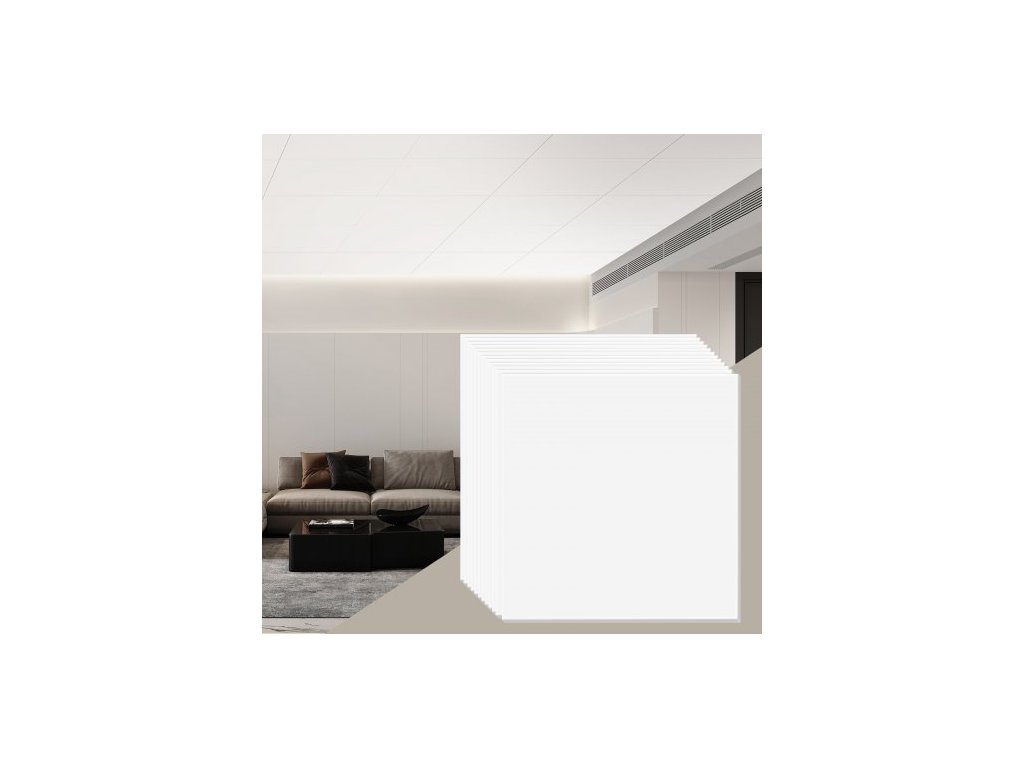 Stropní dlaždice , balení 12 kusů, 24 x 24 palců, stropní dlaždice z prémiové PVC pěnové desky, protipožární, s dobrou flexibilitou a snadnou instalací, stropní krytina pro domácí/kancelářskou dekoraci, hladká bíláDekorativní akustika