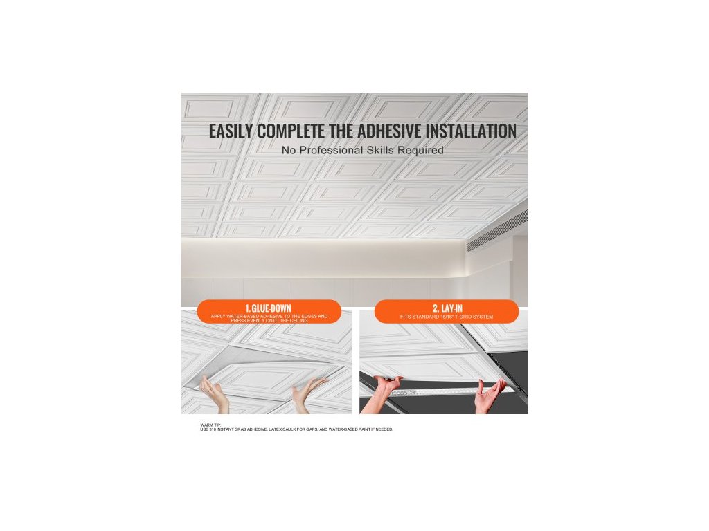 Stropní dlaždice , balení 12 kusů, 61 cm x 61 cm, PVC, snadná instalace, bílý kolíkový vzor
