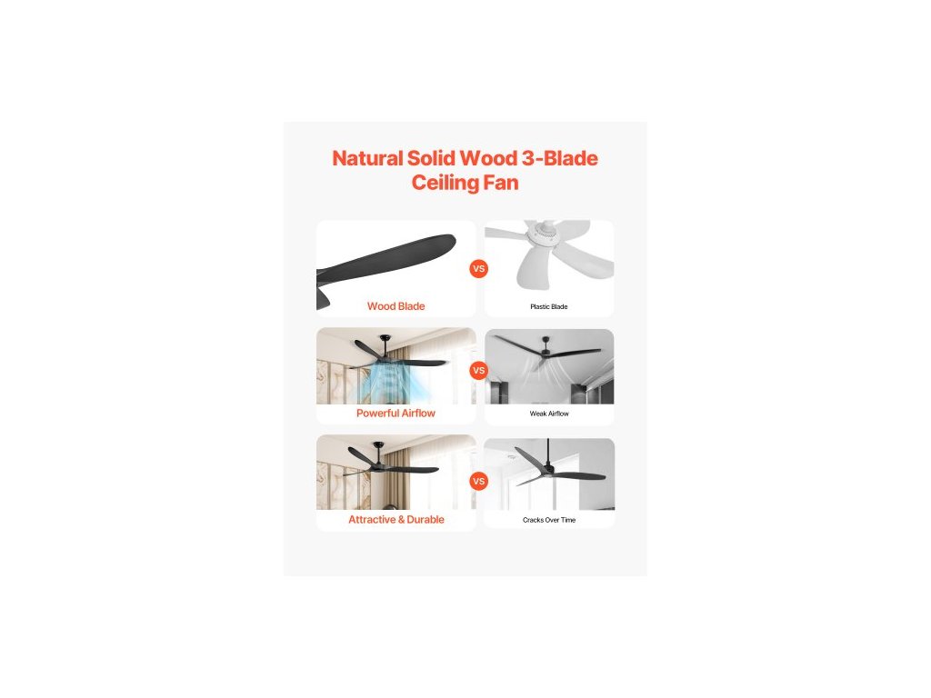 Stropní ventilátor 72 palců bez světla, 6stupňové dálkové ovládání, 3 dřevěné lopatky, reverzibilní stejnosměrný motor, moderní nízkoprofilový zapuštěný venkovní ventilátor do ložnice, obývacího pokoje, na terasu, pro vnitřní i venkovní použití,