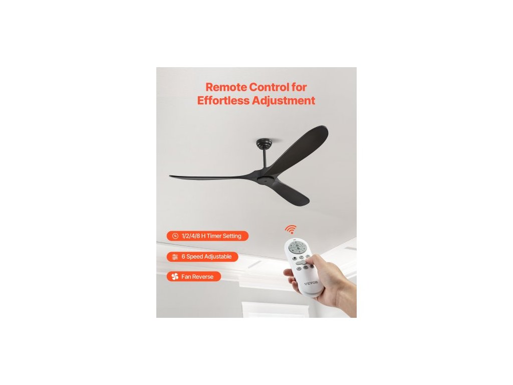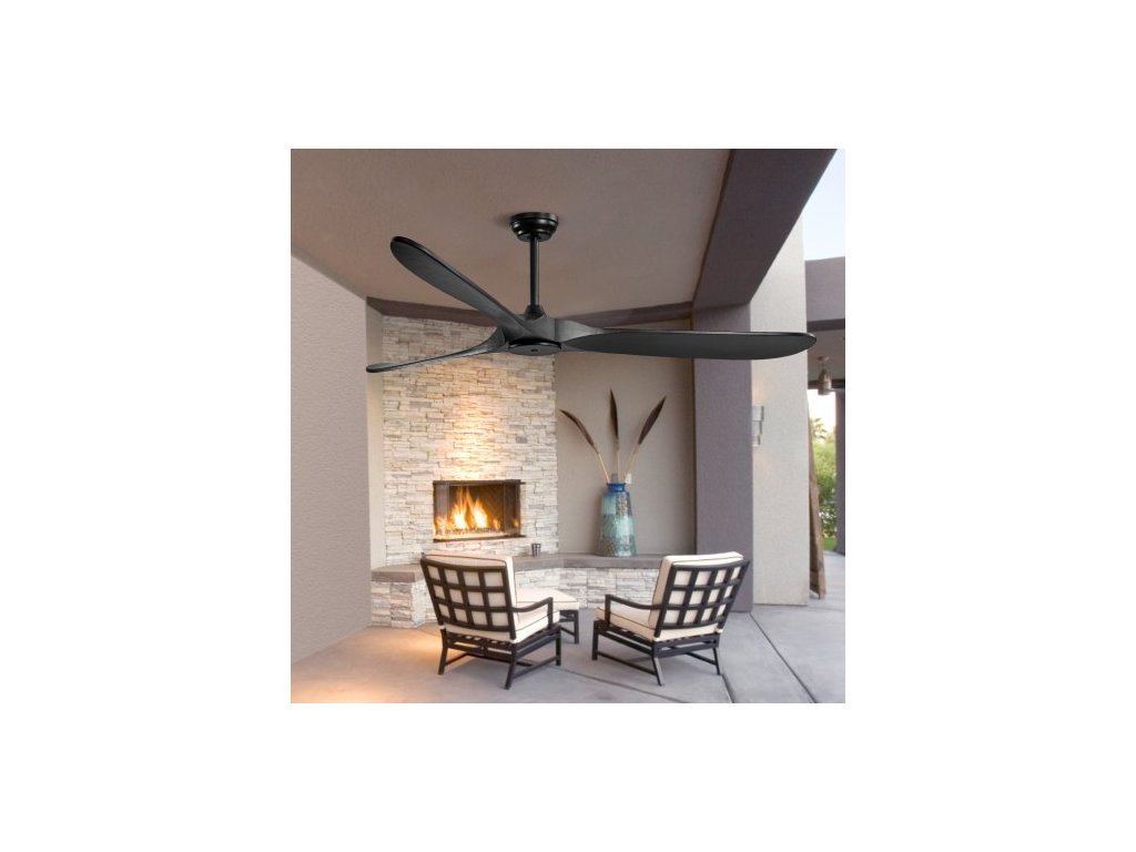 Stropní ventilátor 72 palců bez světla, 6stupňové dálkové ovládání, 3 dřevěné lopatky, reverzibilní stejnosměrný motor, moderní nízkoprofilový zapuštěný venkovní ventilátor do ložnice, obývacího pokoje, terasy, pro vnitřní i venkovní použití, černý3 různé velikosti spouštěcích tyčí