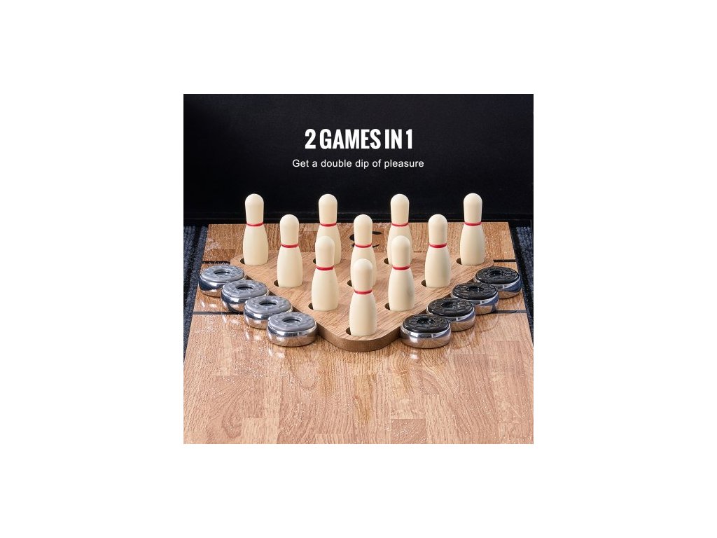 stůl na shuffleboard, 9 stop dlouhý LED shuffleboard s osvětlením pro rodinnou hernu, herní sada 2 v 1 - shuffleboard a bowling, s hrací plochou odolnou proti poškrábání, nohy, 8 puků, bowlingová sada, vosk, kartáč