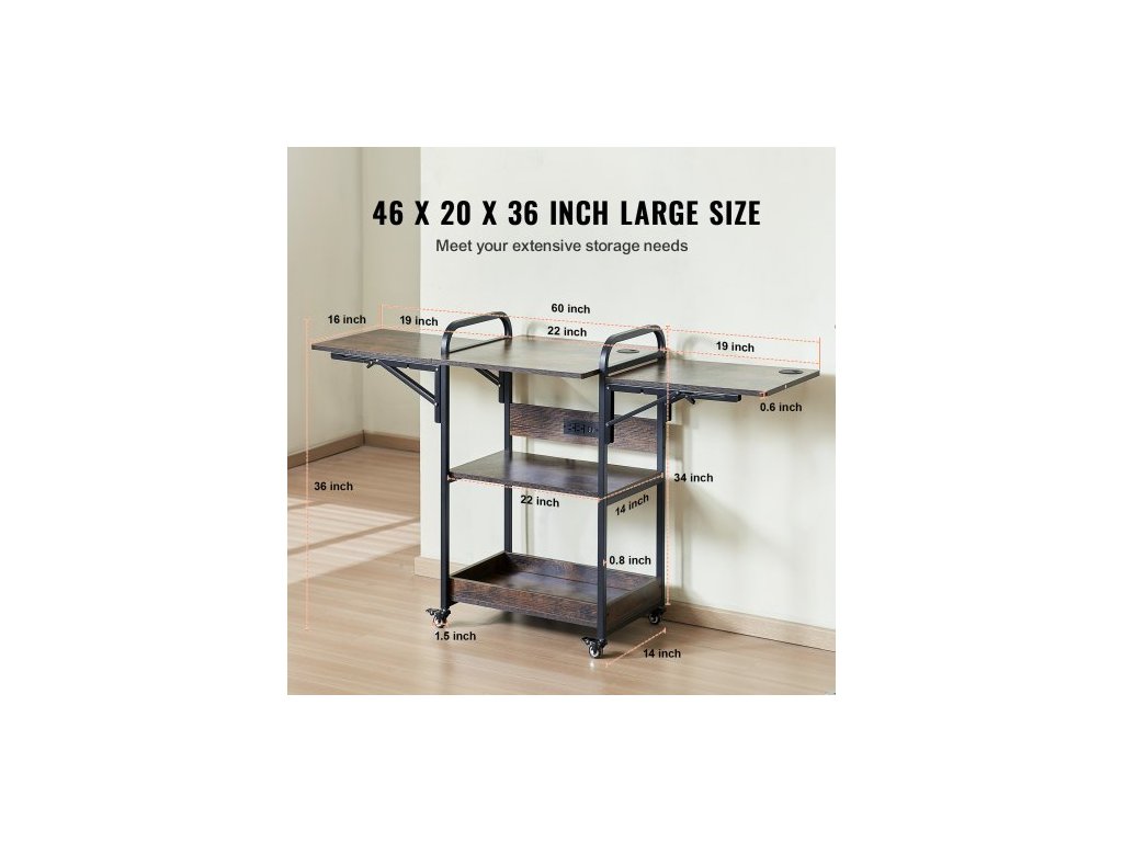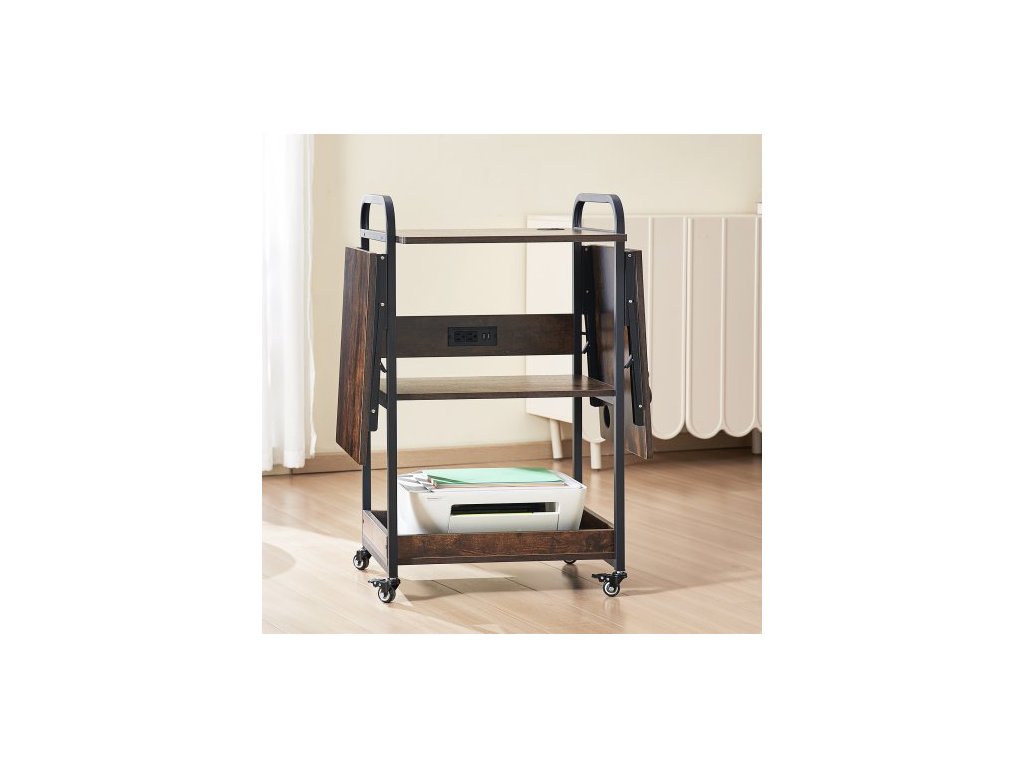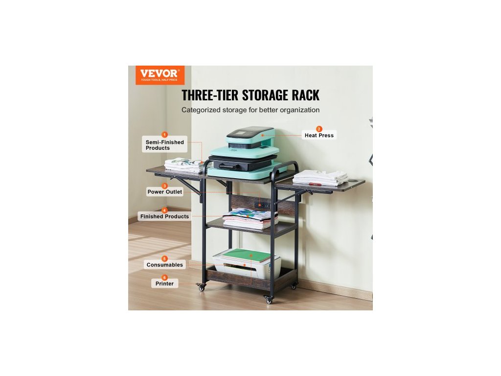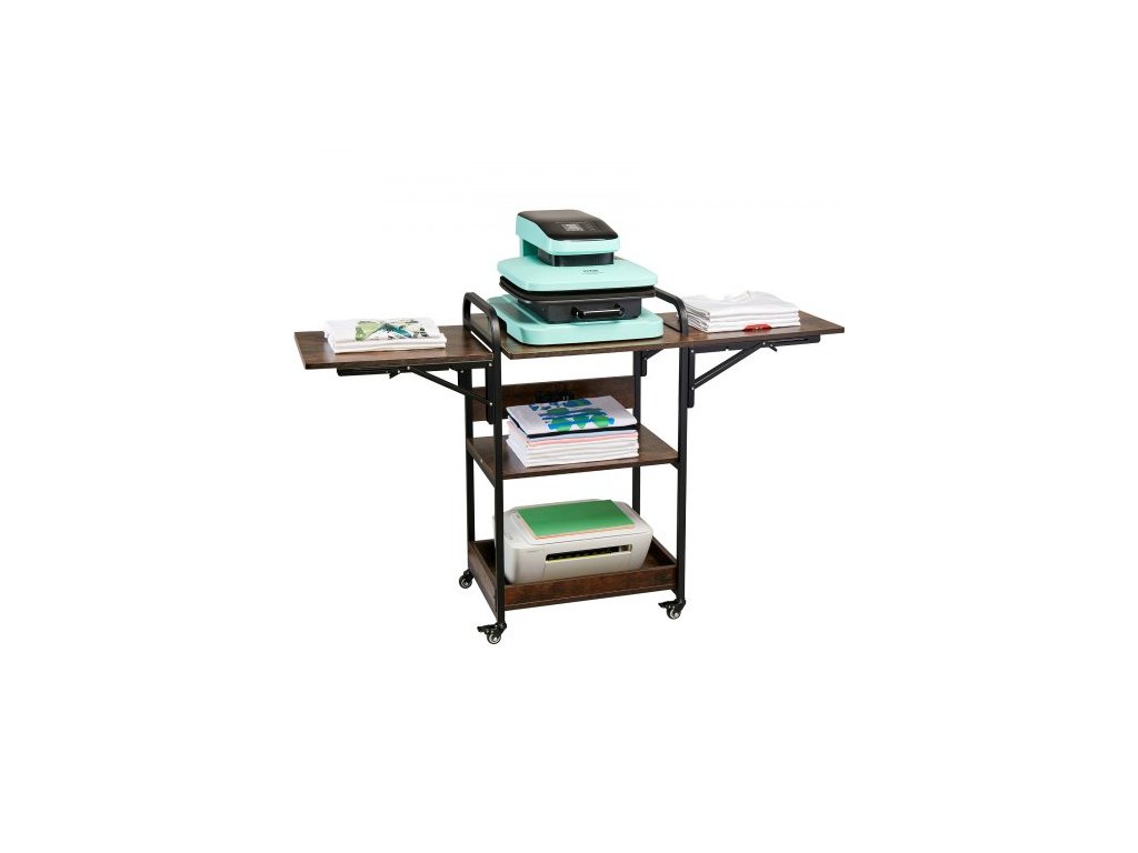 Stůl pro tepelný lis s nabíjecí stanicí, 3stupňový pohyblivý stojan pro tepelný lis, skládací stojan pro sublimační přenosový stroj s kolečky, pojízdný kovový pracovní stůl pro sublimační přenosový stroj, hnědýDostatek úložného prostoru