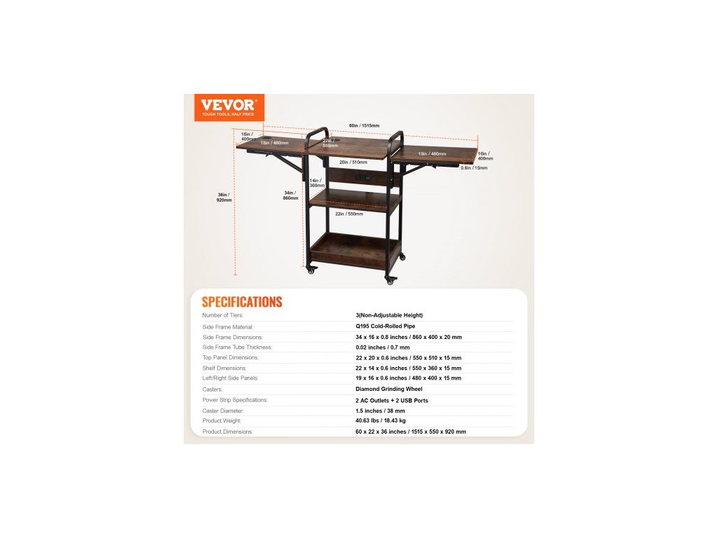 Kolečka: Diamantový brusný kotouč,Počet úrovní: 3 (nenastavitelná výška),Specifikace prodlužovacího kabelu: 2 AC zásuvky + 2 USB porty,Číslo modelu položky: DX0202-C240277S-01(US)/DX0202-C240278S-01(EU),Materiál bočního rámu: Trubka válcovaná za studena Q195,Hmotnost výrobku: 40,63 lbs / 18,43 kg