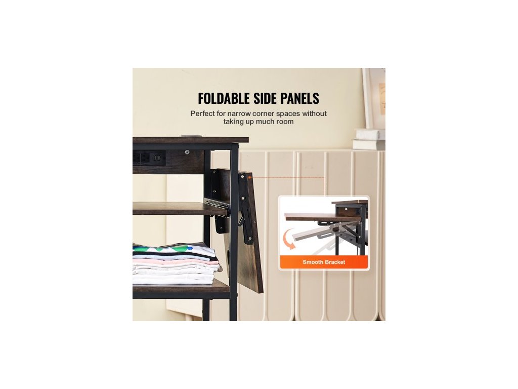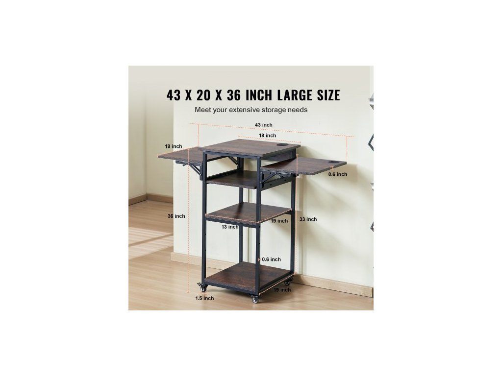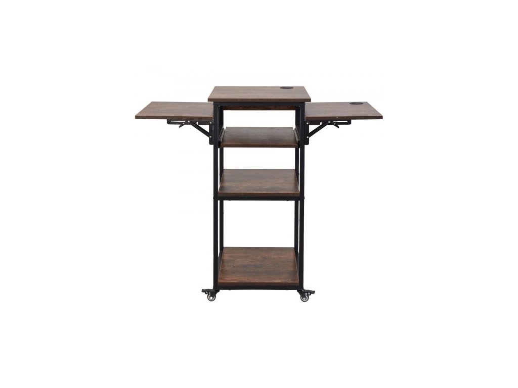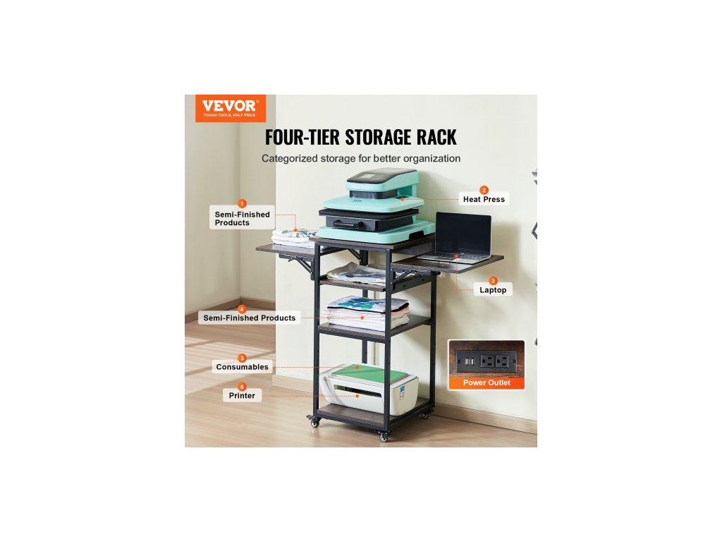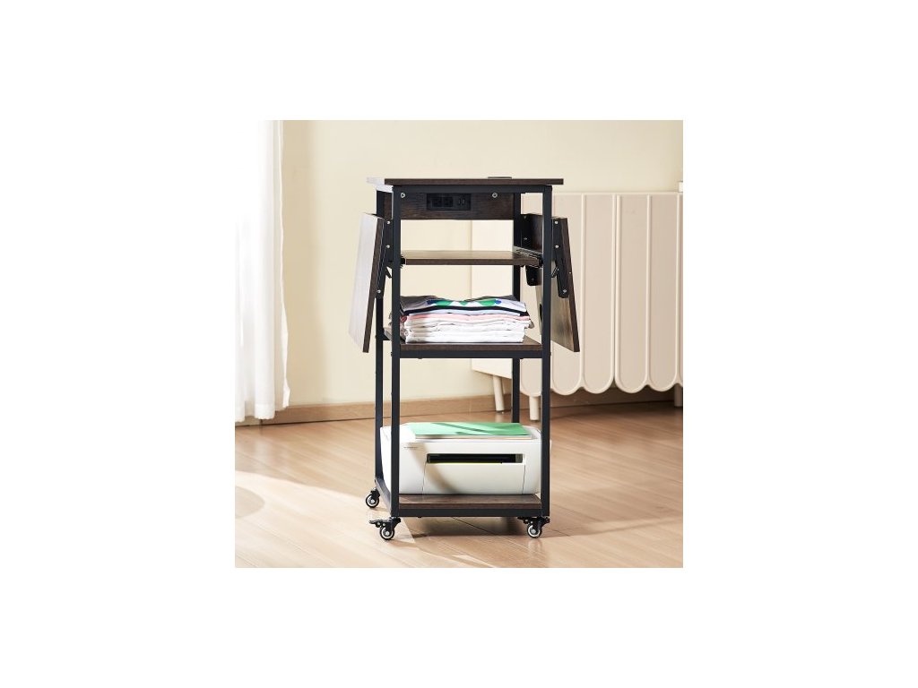 Stůl pro tepelný lis s nabíjecí stanicí, 4úrovňový pohyblivý stojan pro tepelný lis, skládací stojan pro sublimační přenosový stroj s kolečky, pojízdný kovový pracovní stůl pro sublimační přenosový stroj, hnědýDostatek úložného prostoru