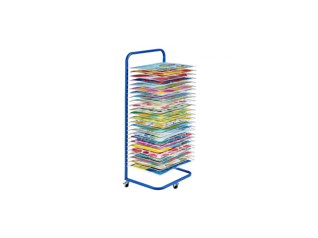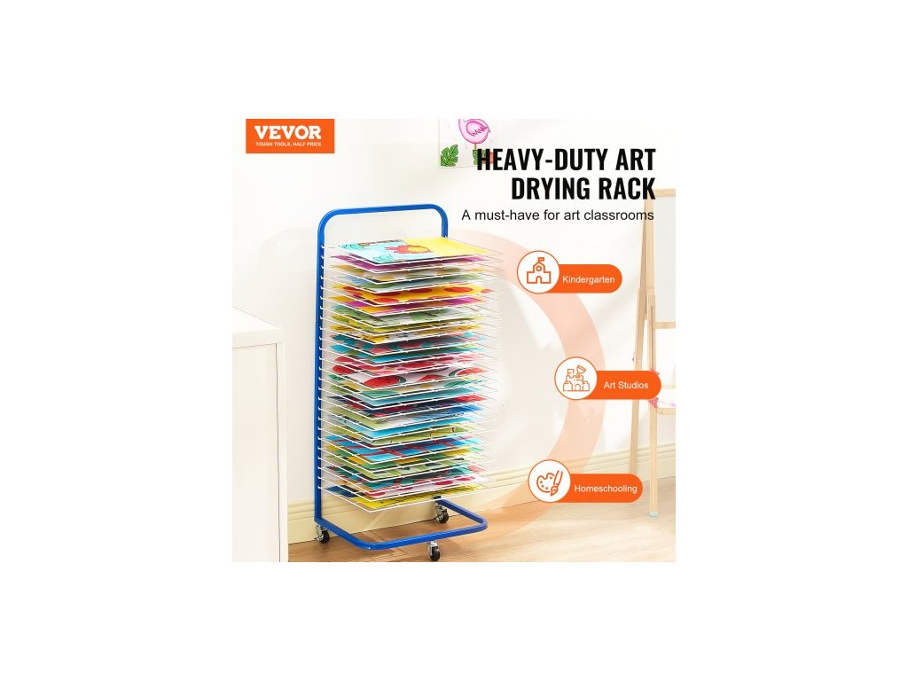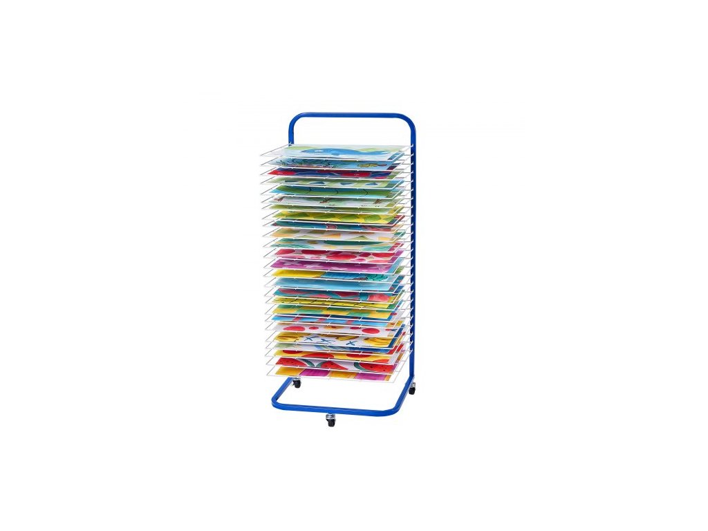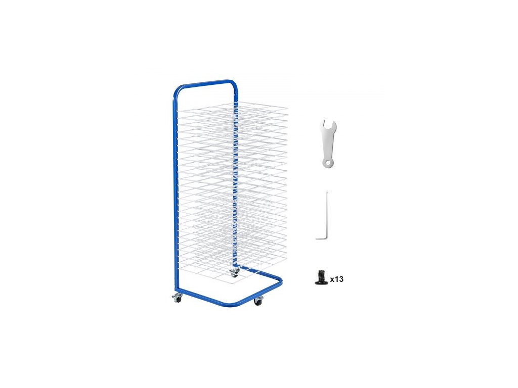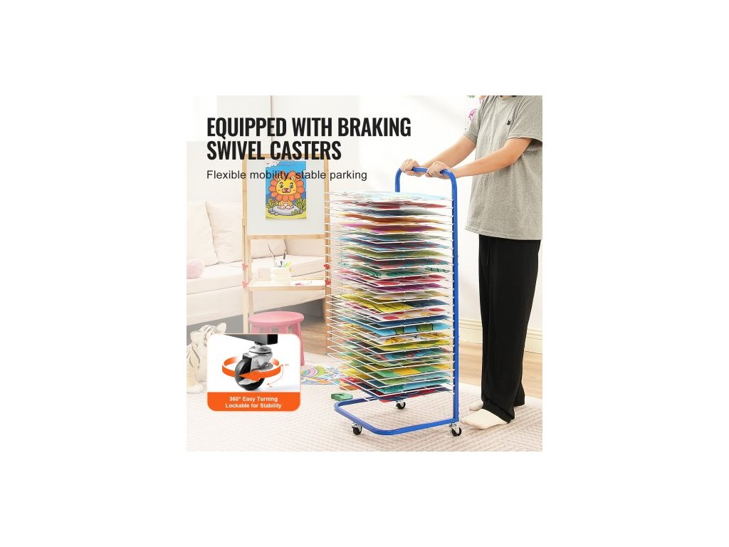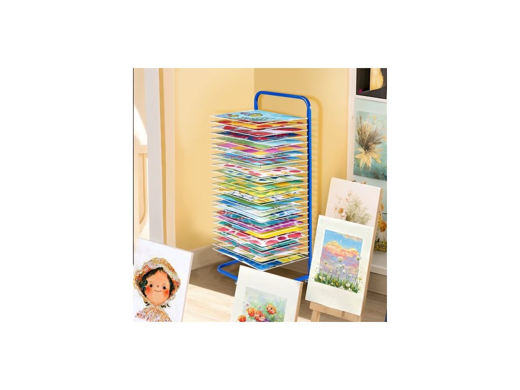 sušák na malířské předměty, 25 vyjímatelných polic 17 x 13 x 39,4 palce sušák na malířské předměty s uzamykatelnými kolečky, sušák na malířské předměty z uhlíkové oceli pro umělecká díla ve třídách, uměleckých ateliérech a školách, modrobílýVysoká nosnost