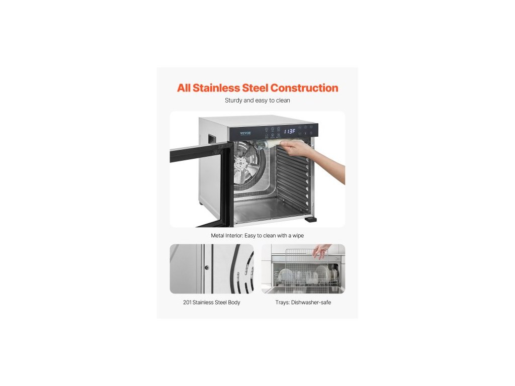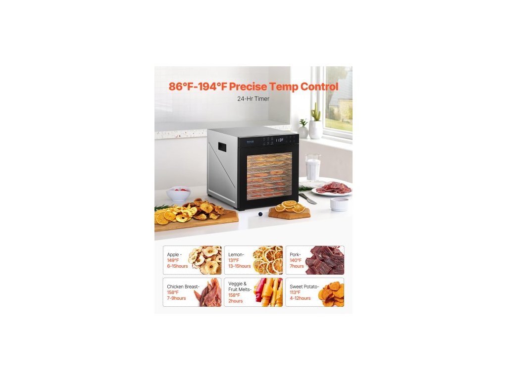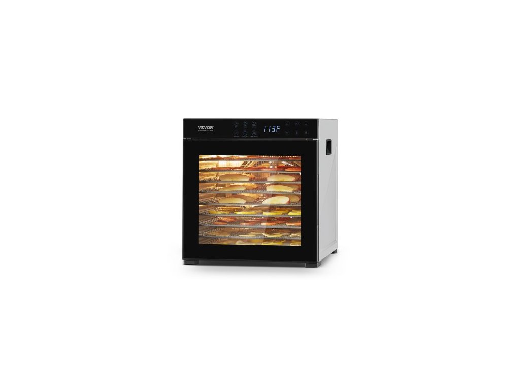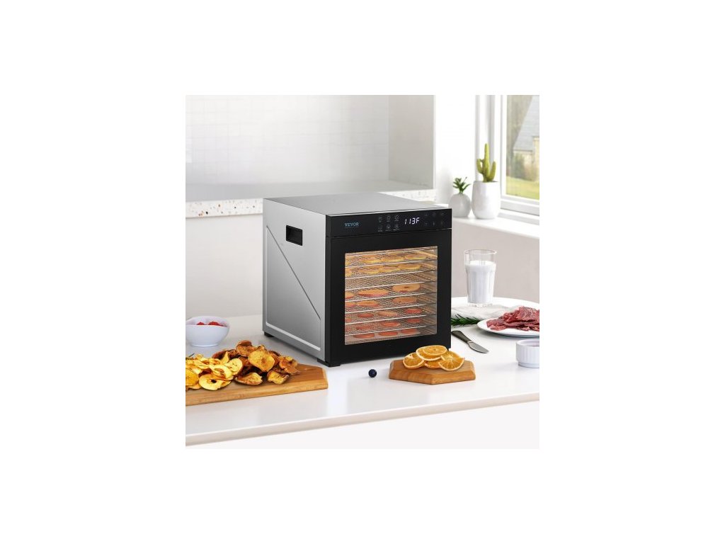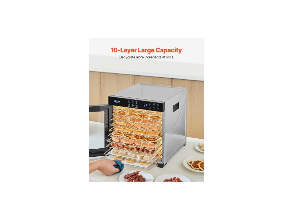 Sušička potravin , 10 nerezových táců, elektrická sušička potravin o výkonu 1000 W s nastavitelnou teplotou a 24hodinovým časovačem, lyofilizátor na sušené maso, maso, ovoce, zeleninu, bylinky a psí pamlskySušení horkým vzduchem