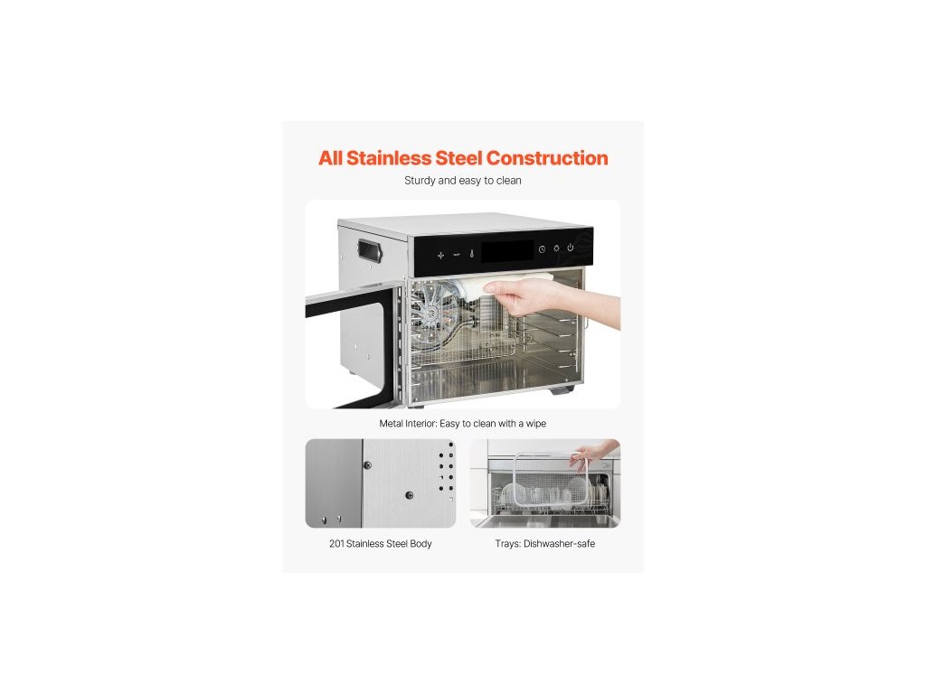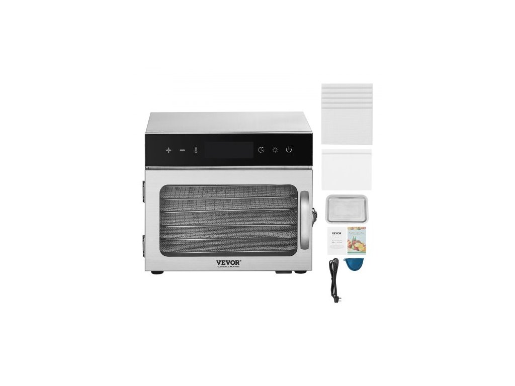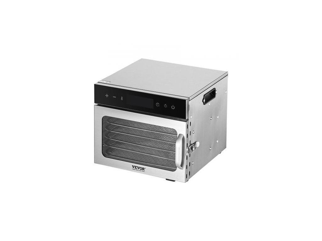 Sušička potravin , 6 nerezových táců, elektrická sušička potravin 400 W s nastavitelnou teplotou a 24hodinovým časovačem, lyofilizátor na sušené maso, maso, ovoce, zeleninu, bylinky a psí pamlskySušení horkým vzduchem
